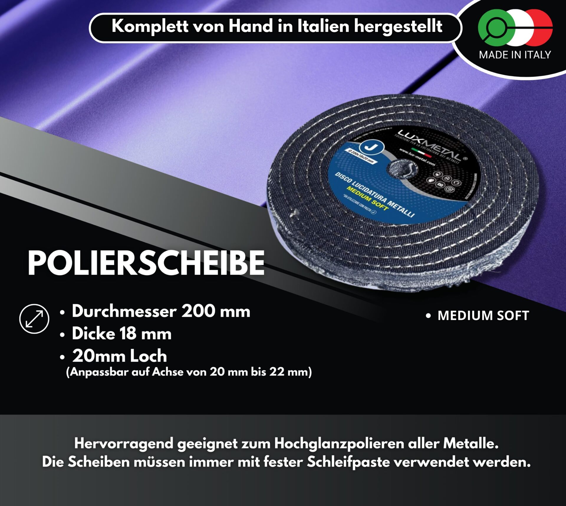 Wartość tego produktu polega na jego wszechstronności i skuteczności. Dzięki niemu możesz szybko i łatwo przywrócić blask i lśnienie swoim metalowym przedmiotom, oszczędzając czas i wysiłek. Tarcza szlifierka koła do polerowania Lux Metal Bawełna/Jeans J Medium Fine 200 mm to niezbędne narzędzie dla każdego, kto dba o estetykę i wygląd swoich metalowych przedmiotów.