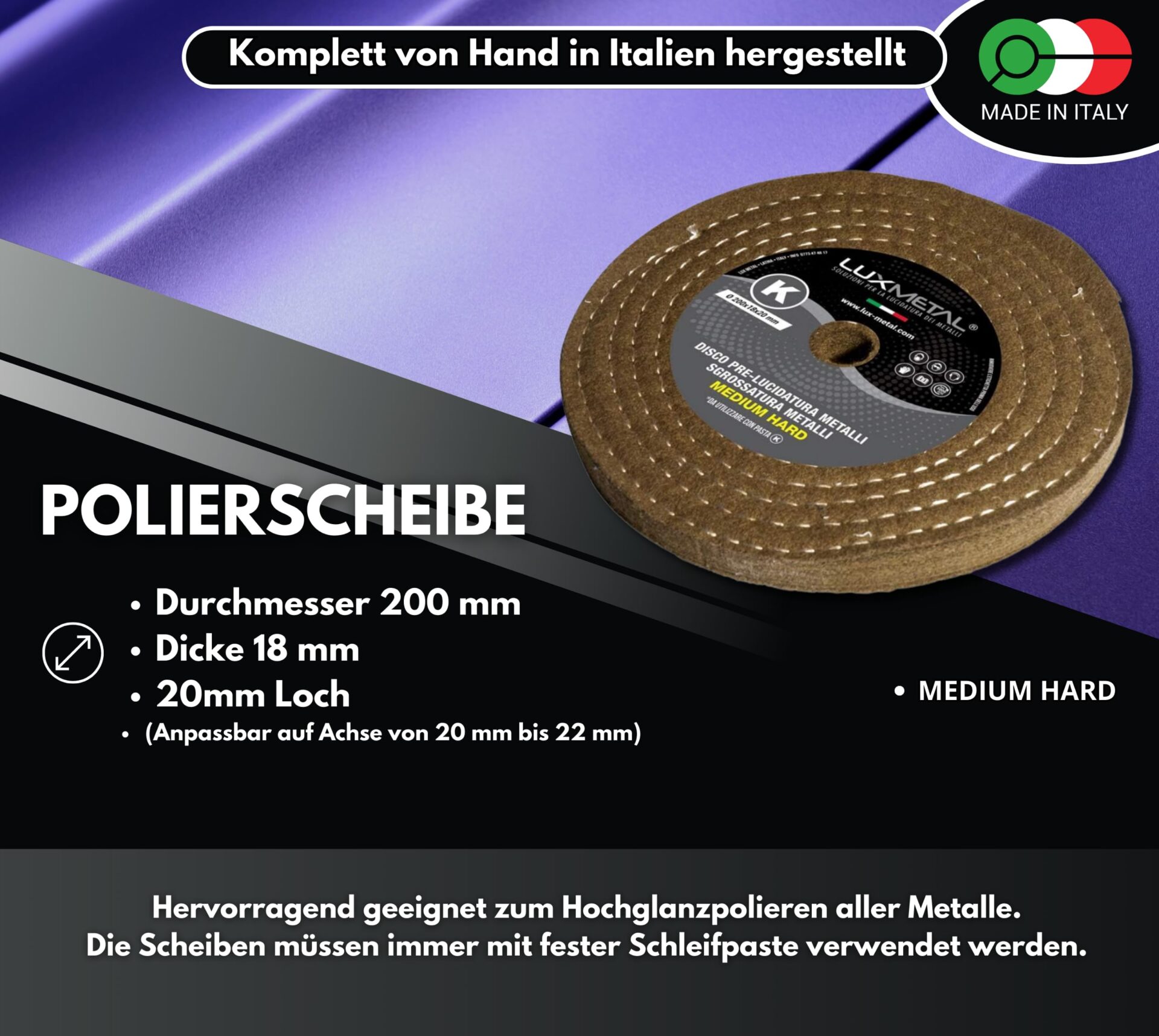 Tarcza ściernica koła wstępnie polerowanie ścierne Lux Metal Wełna/Filc K Medium Hard 200 mm to doskonałe narzędzie do obróbki zgrubnej, eliminującej zarysowania, tlenek i rdzę z różnych metali, takich jak aluminium, stal nierdzewna, mosiądz, miedź, brąz i żelazo. Dzięki swojej wysokiej jakości wykonania i skuteczności, tarcza ta jest niezastąpiona w warsztatach, fabrykach oraz przy pracach remontowych i konserwacyjnych.