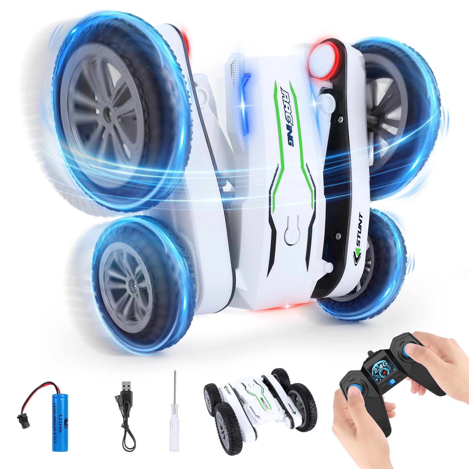 – 2,4 GHz pilot zdalnego sterowania: Samochód jest wyposażony w pilot zdalnego sterowania o częstotliwości 2,4 GHz, który spełnia potrzeby osób w wieku od 6 do 12 lat. Sterowanie samochodem jest proste i intuicyjne, a dzieci mogą cieszyć się różnymi trybami jazdy, takimi jak Twist/Move/Rotate/Off-Road.