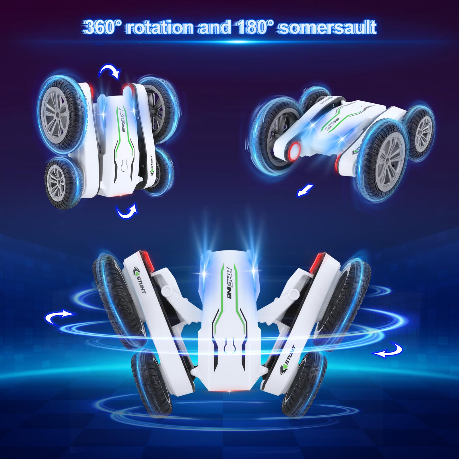 – Driftowanie we wszystkich kierunkach: Samochód posiada zdolność do driftowania we wszystkich kierunkach, 360-stopniowe obroty, jazdę dwustronną oraz możliwość przełączania się między trybami jazdy po drodze i poza nią. Doskonale sprawdza się na różnych terenach, takich jak piasek, trawa, błoto, skały i wiele innych.