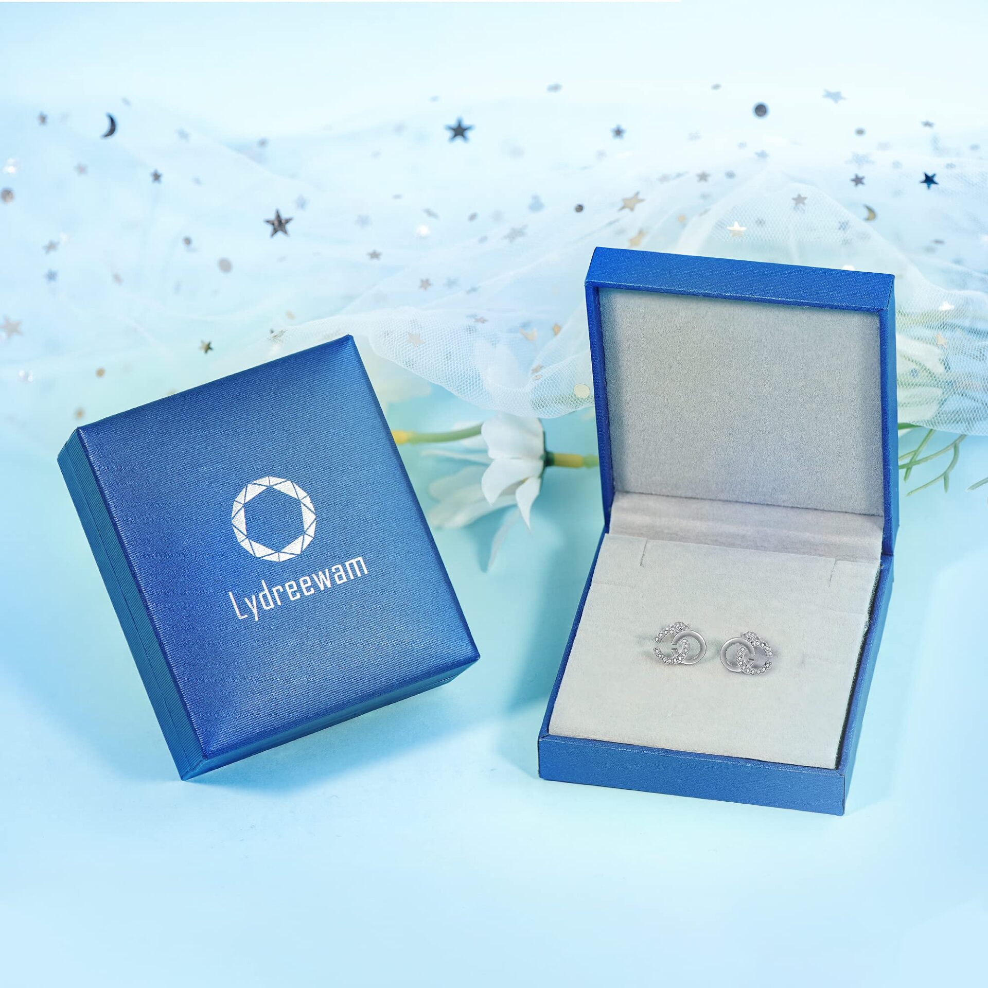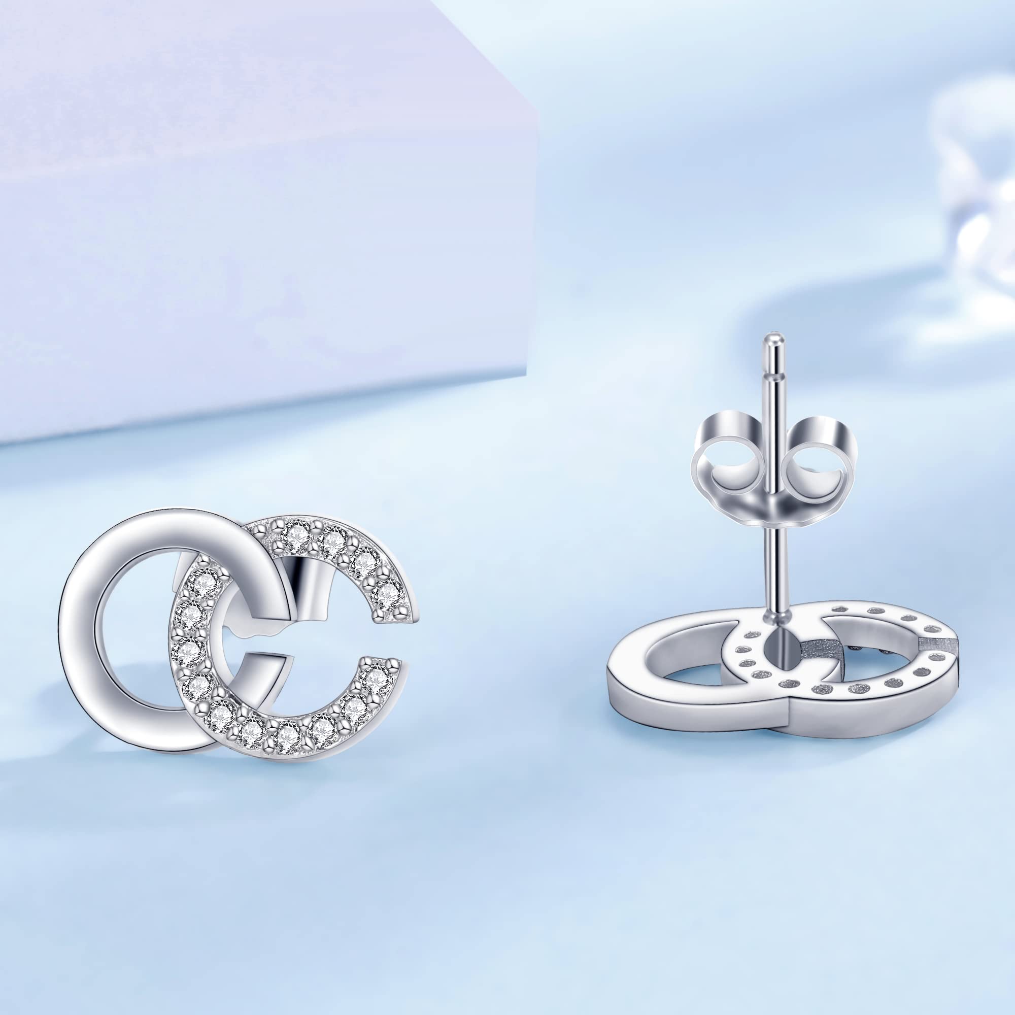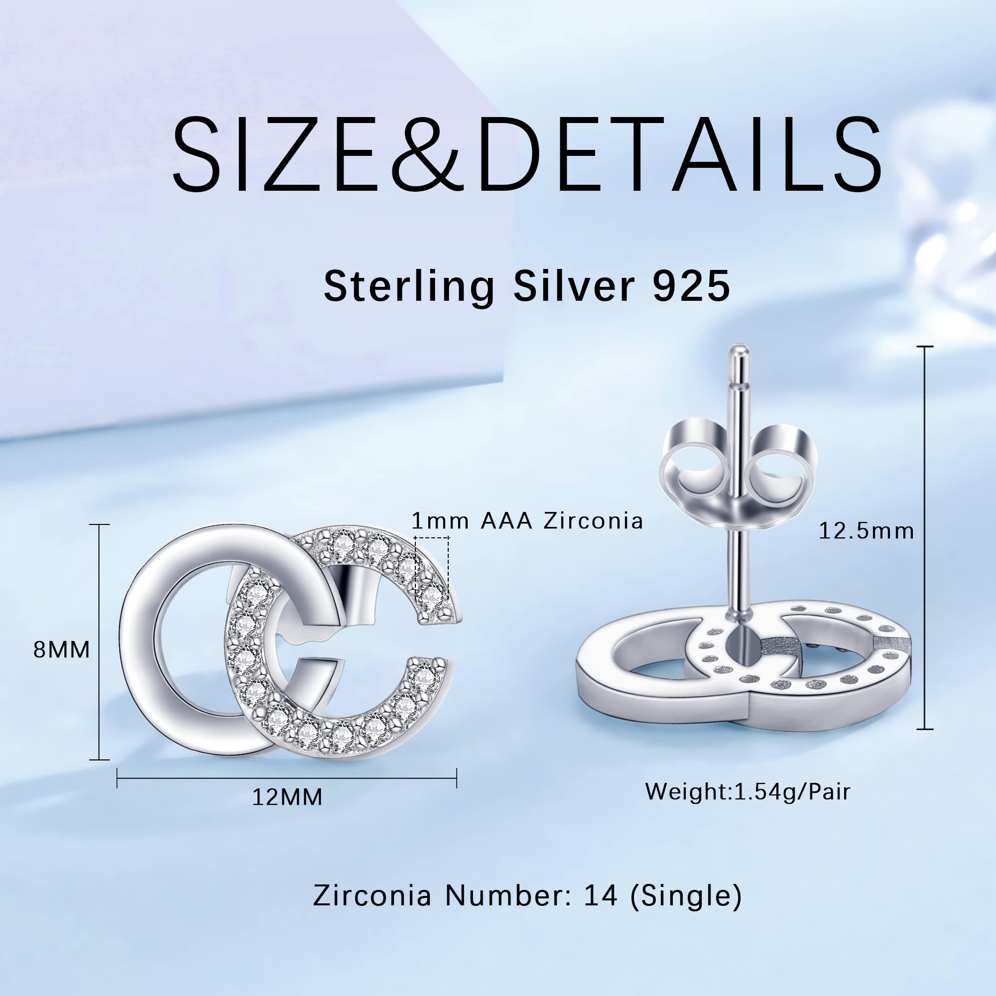 Lydreewam Kolczyki na sztyfcie ze srebra próby 925 damskie kolczyki CC z cyrkonią 3A średnica 12 mm