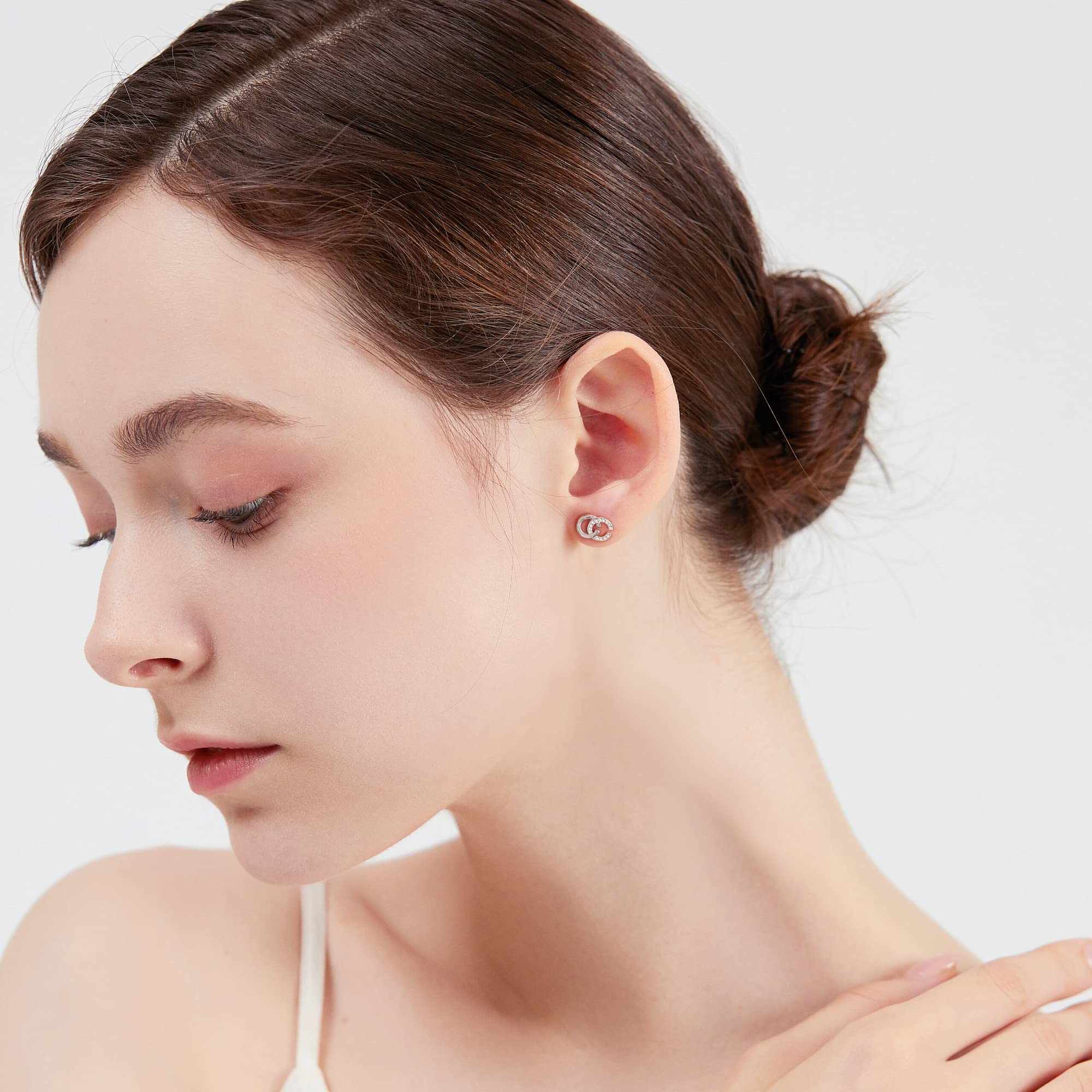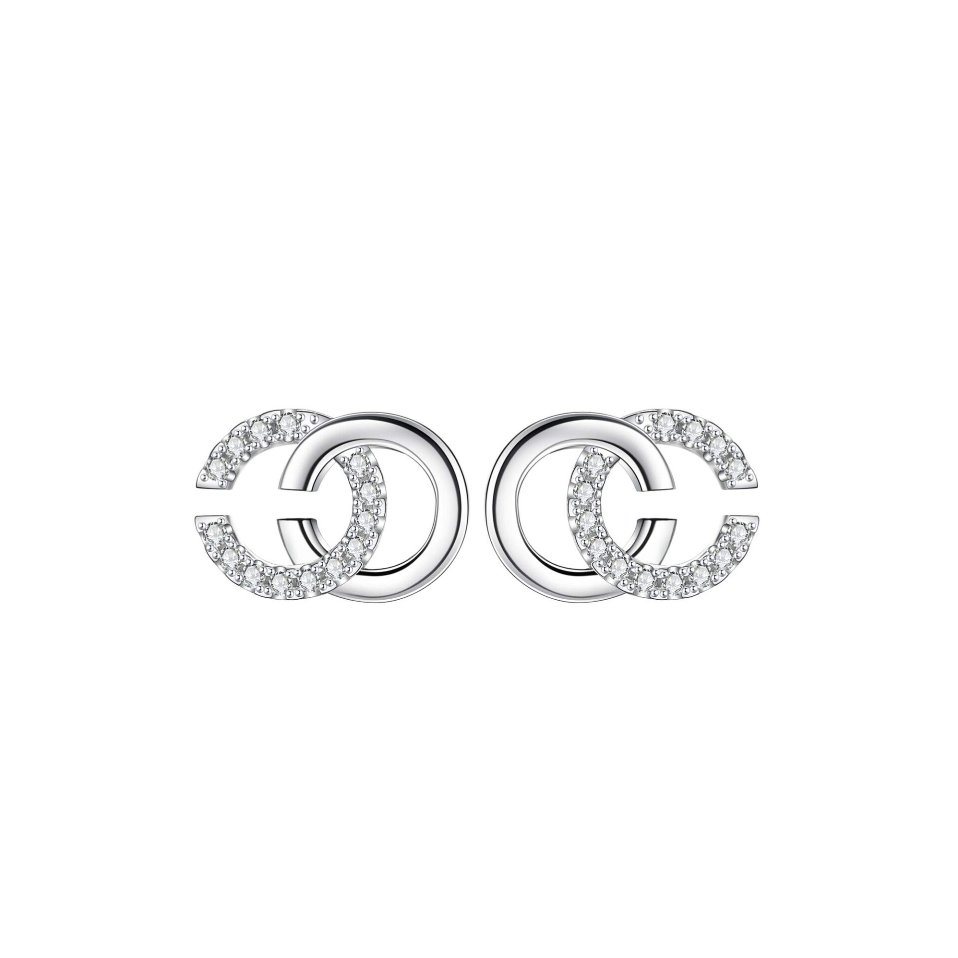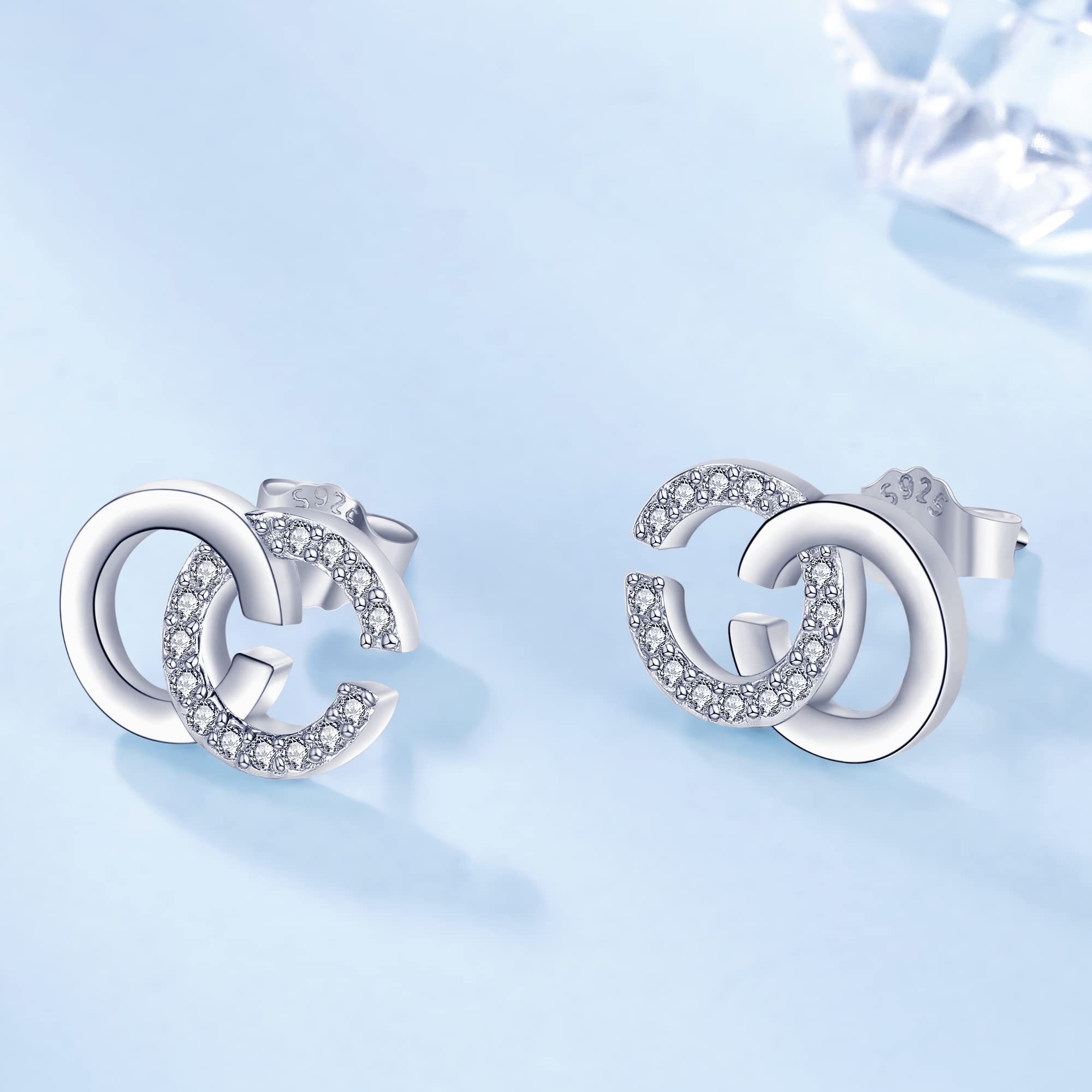 Lydreewam Kolczyki na sztyfcie ze srebra próby 925 damskie kolczyki CC z cyrkonią 3A średnica 12 mm