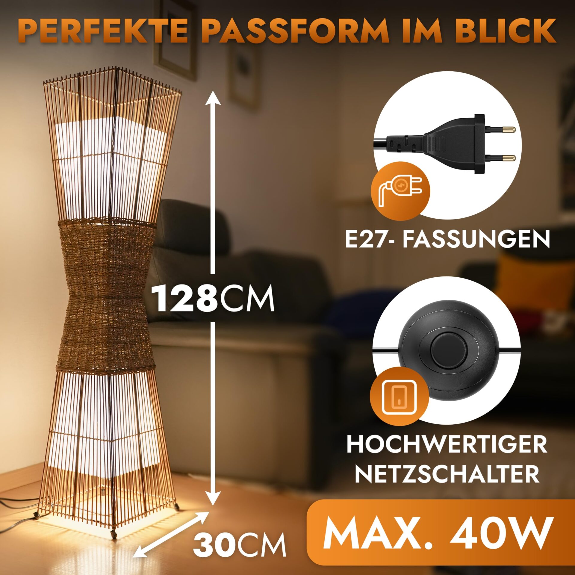 Wykonana przez markę M2 OUTLET, lampa Skov 36282 wyróżnia się solidnością oraz wysoką jakością wykonania. Jej brązowy kolor w połączeniu z naturalnym bambusem i drewnem tworzy harmonijną całość, która doskonale wpisuje się w różnorodne style aranżacji wnętrz. Wymiary lampy — 30×30 cm na podstawie oraz wysokość 128 cm — sprawiają, że jest ona idealnym wyborem zarówno do małych, jak i większych przestrzeni.