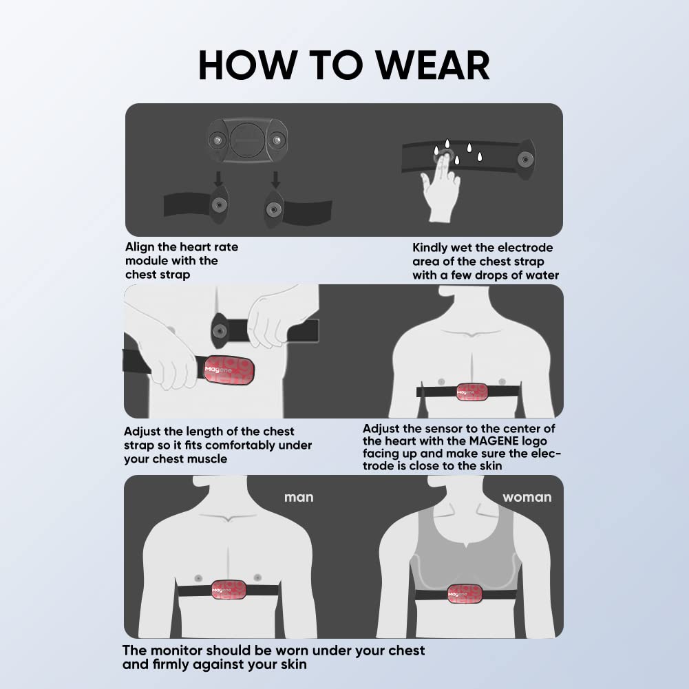 Magene H603 Pulsometr Pasek na klatkę piersiową HRM Fitness Tracker IP67 Wodoodporność Obsługa Bluetooth 4.2 i ANT+, Kompatybilny Wahoo, Zwift, Strava, Elite HRV