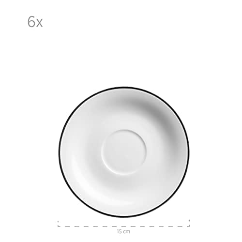 Mäser Serwis do kawy porcelana ENNA biały czarny to stylowy i praktyczny zestaw naczyń do kawy, wykonany z wysokiej jakości porcelany. Serwis składa się z 6 filiżanek o pojemności 230 ml, 6 spodków o średnicy 15 cm oraz 6 talerzy o średnicy 20,5 cm, idealnych do podawania ciast i deserów.
