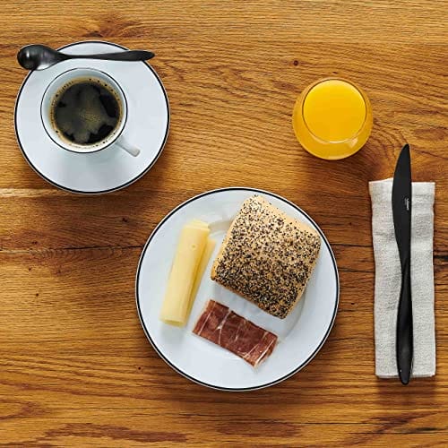 Wzornictwo serwisu jest eleganckie i uniwersalne, dzięki czemu doskonale wpasowuje się zarówno w klasyczne, jak i nowoczesne wnętrza. Biel porcelany z delikatną czarną krawędzią stanowi stylowy akcent wizualny, dodając wyjątkowego uroku serwisowi.