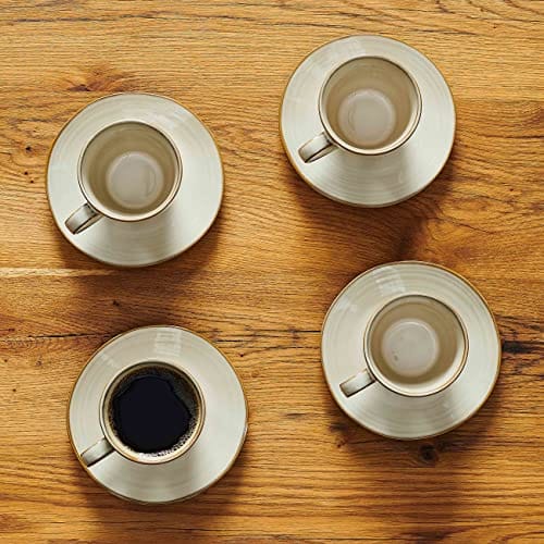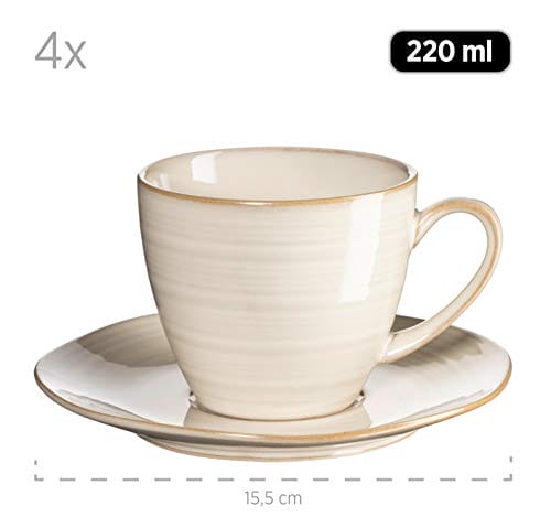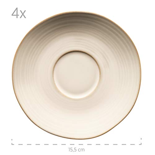 MÄSER Seria Nottingham, zestaw filiżanek do kawy w stylu vintage, dla 4 osób, spodki z nieregularnymi zaokrągleniami w stylu retro, kamionka, beżowe