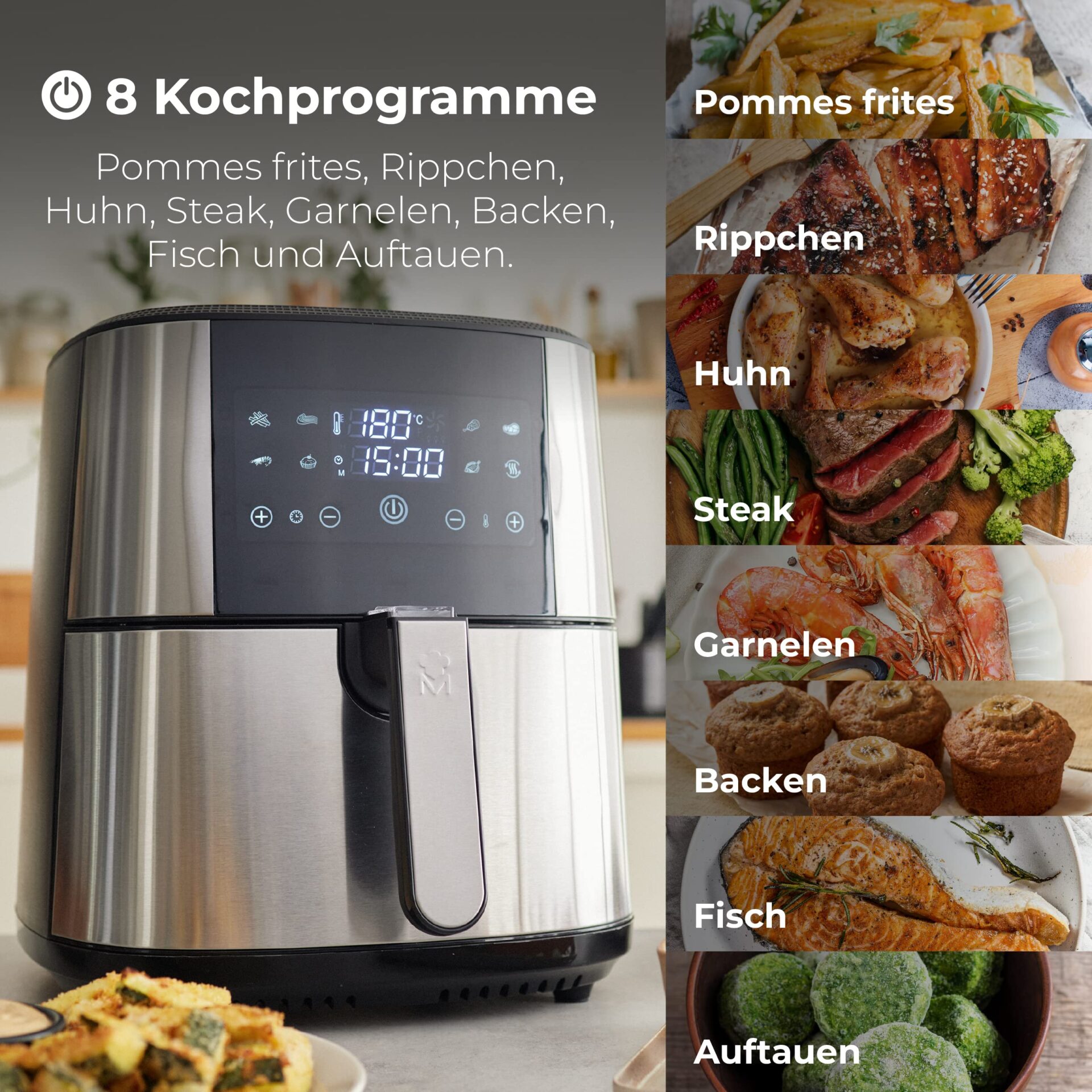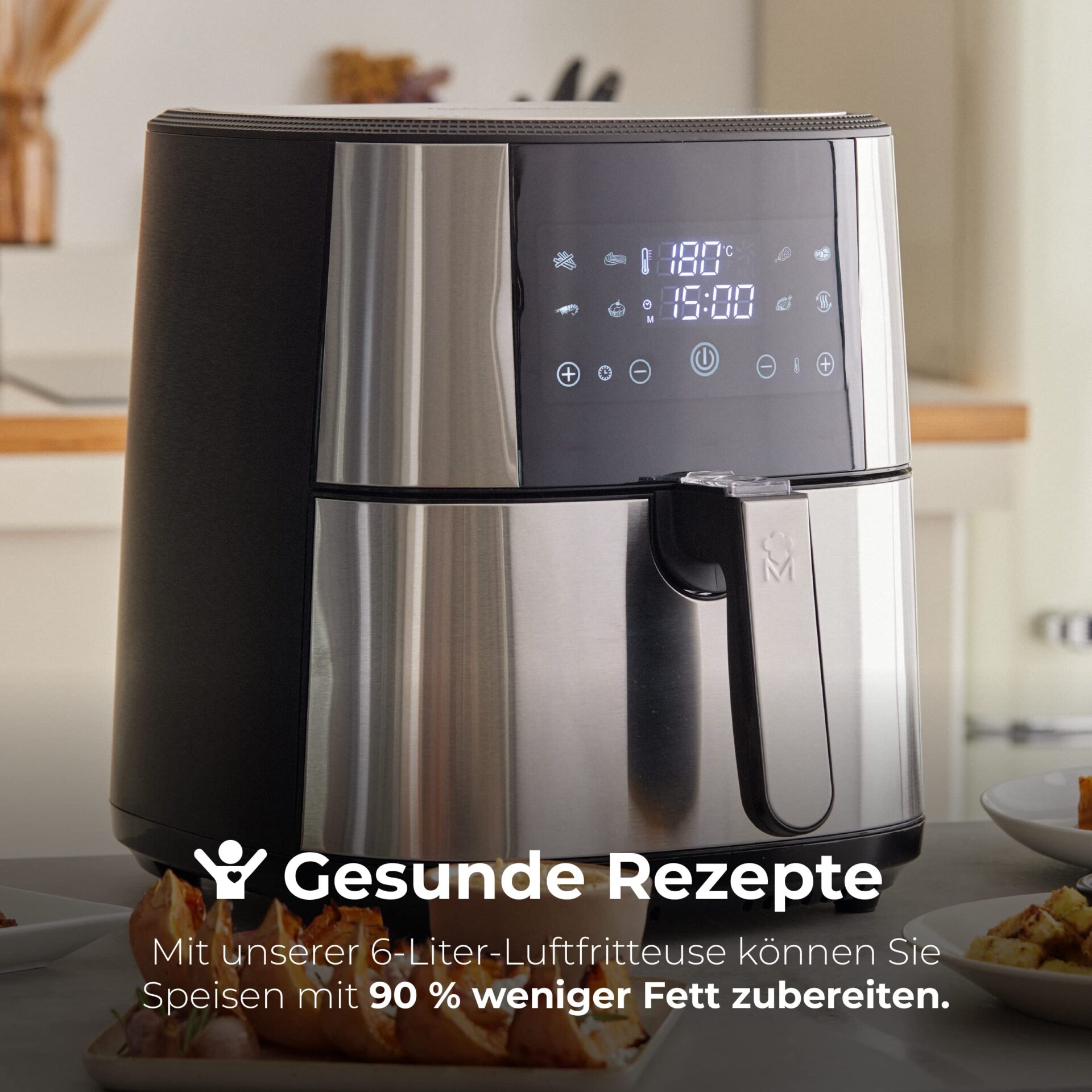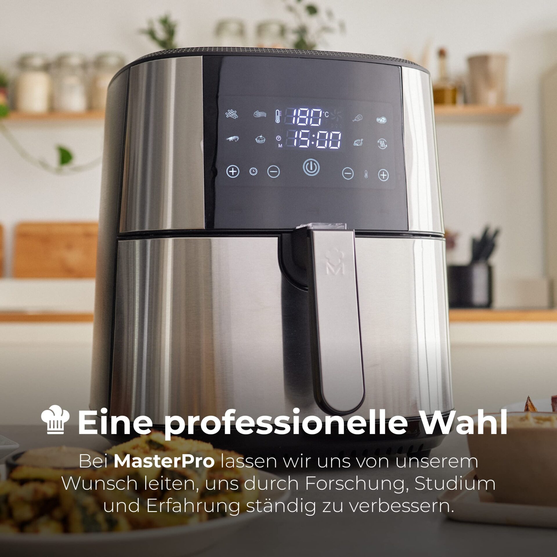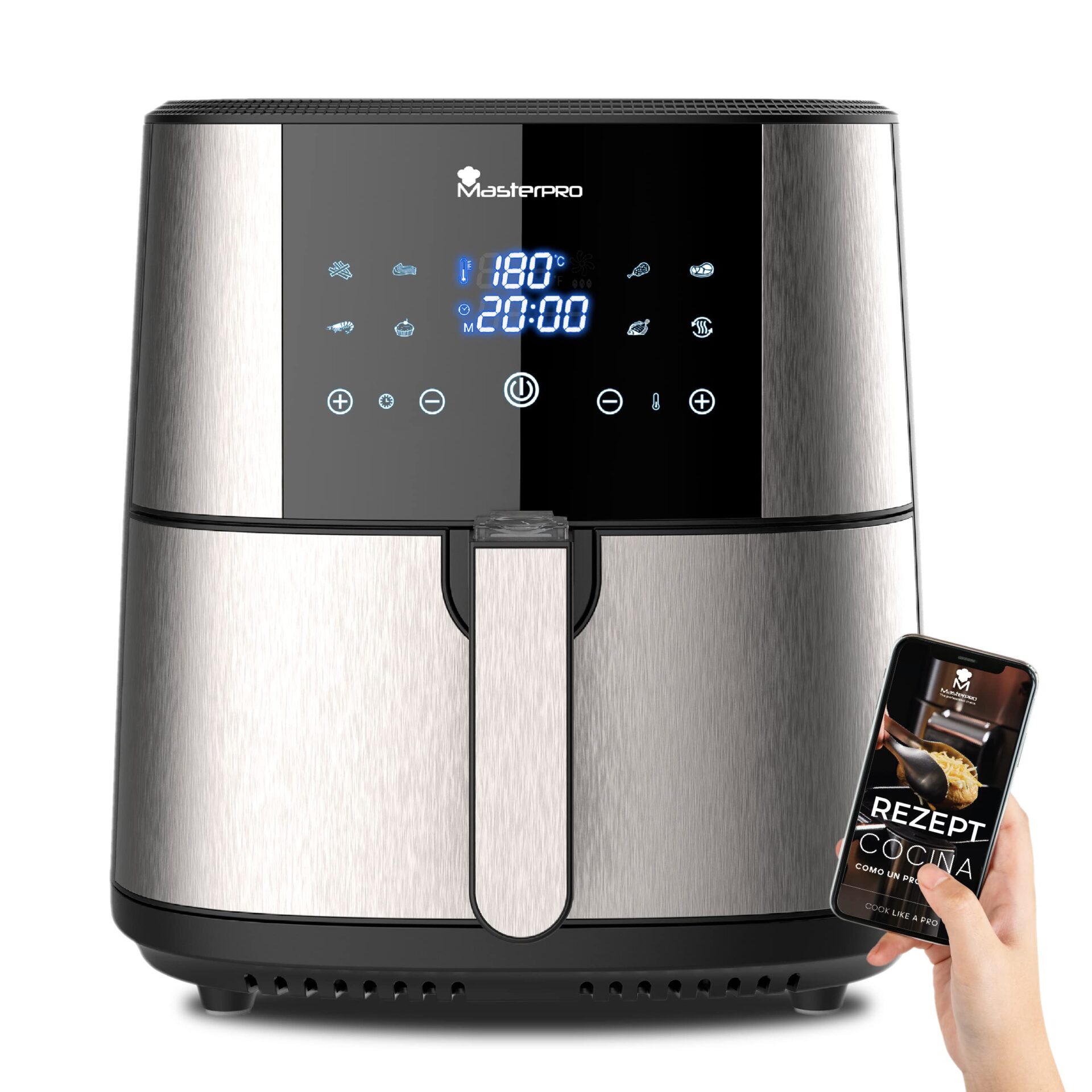 MasterPro Foodies | Oil Free Fryer | AirFryer XXL with 6L Capacity and 1800W Potency | With LED Touch Screen and Non-stick Basket | Air Fryer | 8 Different Functions in 1