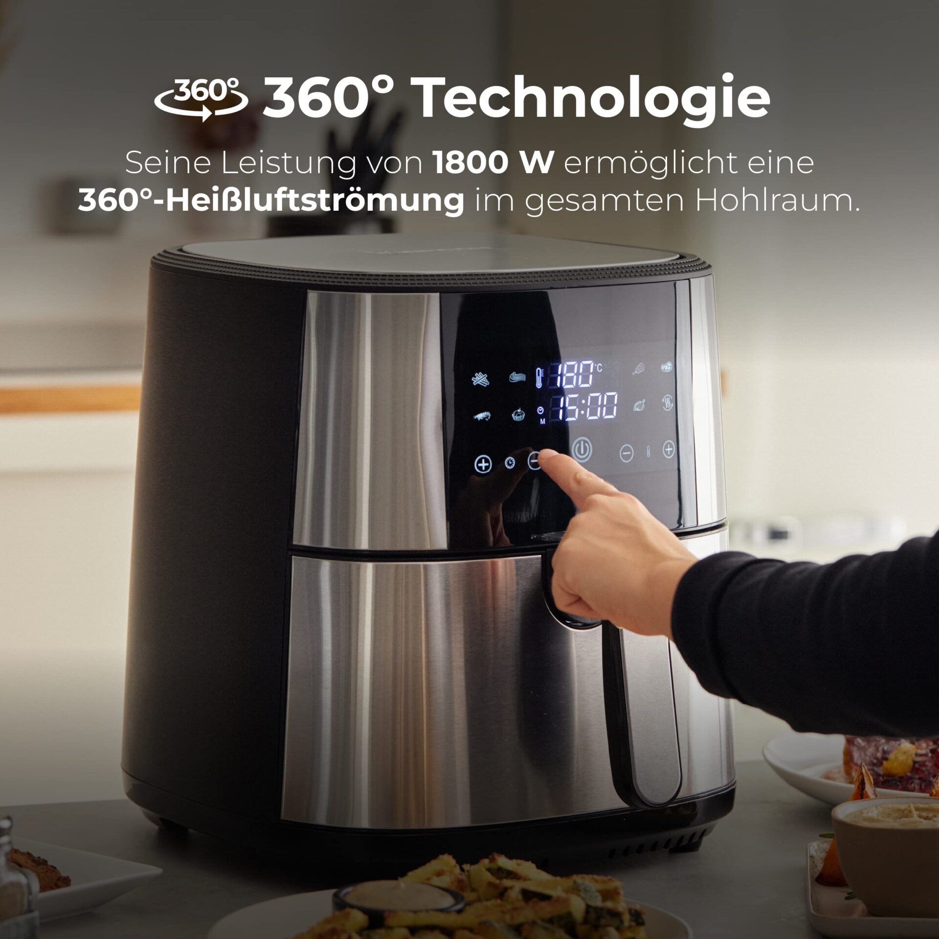 ✅ Możesz przyrządzać potrawy,: Możesz przyrządzać potrawy, używając o 90% mniej tłuszczu, moc 1800 W umożliwia ruch gorącego powietrza o 360 stopni w całej komorze