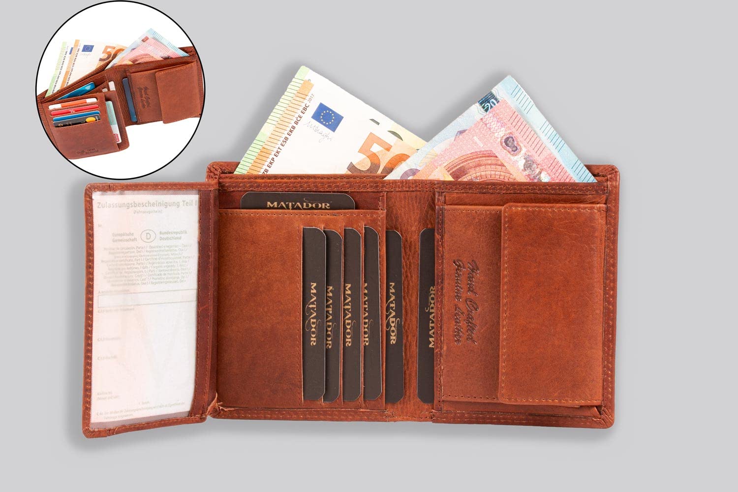 Ręcznie robione unikaty:: Ręcznie robione unikaty: Portfel męski z prawdziwej skóry marki MATADOR jest wykonywany z miłością, doświadczeniem i precyzją ręczną. Premiumowe komponenty męskiego skórzanego portfela w kolorze brązowym pozwalają doświadczyć różnicy w naszej ofercie.