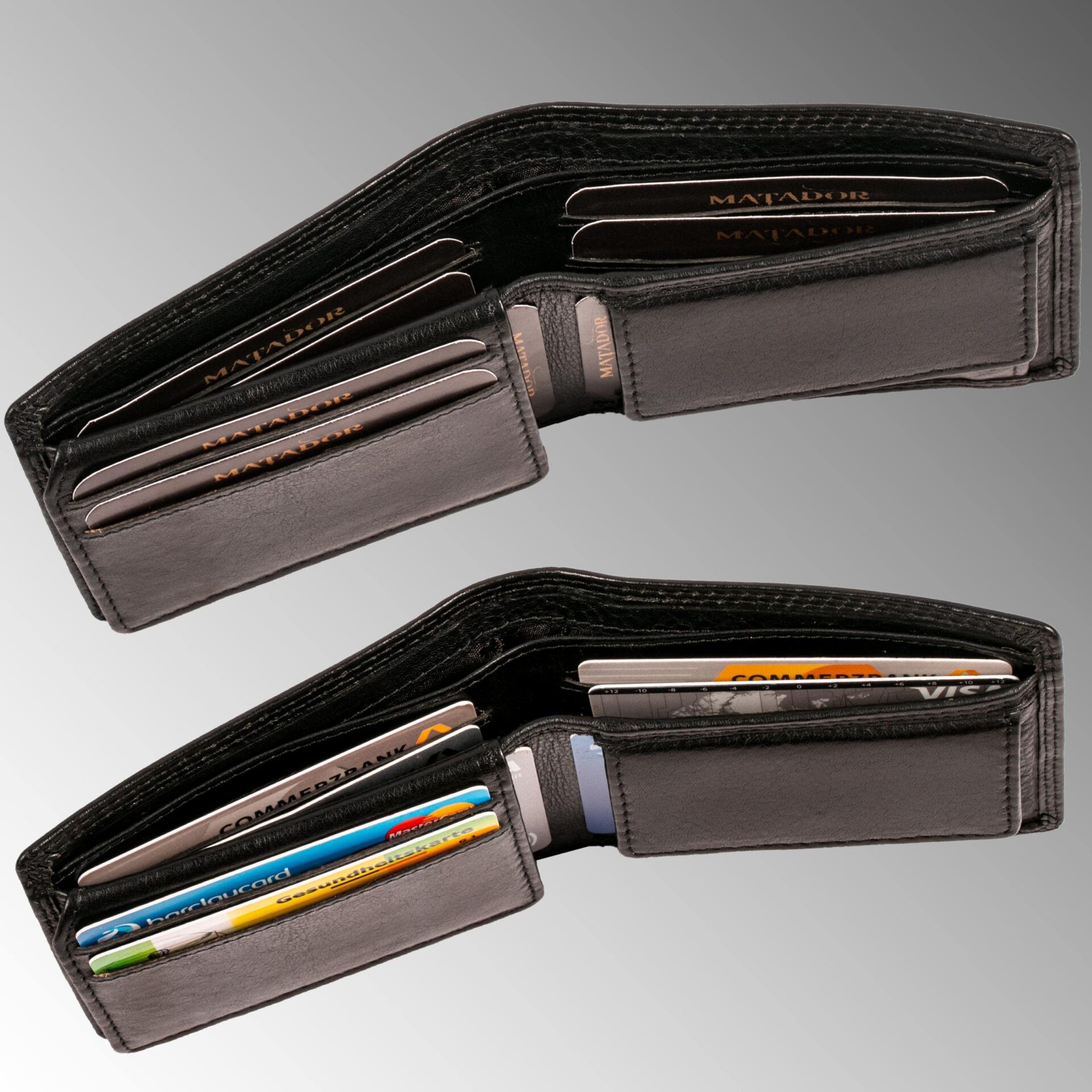 Portfel MATADOR łączy elegancję z funkcjonalnością. Mimo swoich kompaktowych rozmiarów, oferuje szereg praktycznych rozwiązań. Znajdziesz w nim:
