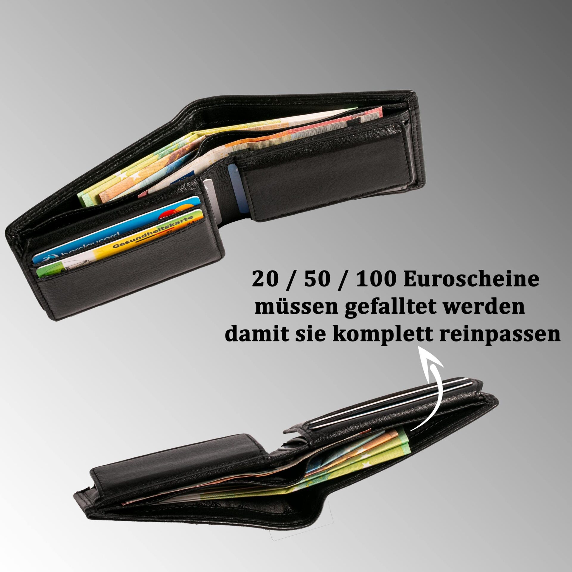 – Dwa schowki na banknoty – wygodnie należy je złożyć, aby zmieściły się w portfelu (zapewnia to ochronę i bezpieczeństwo w przypadku noszenia większej ilości gotówki).