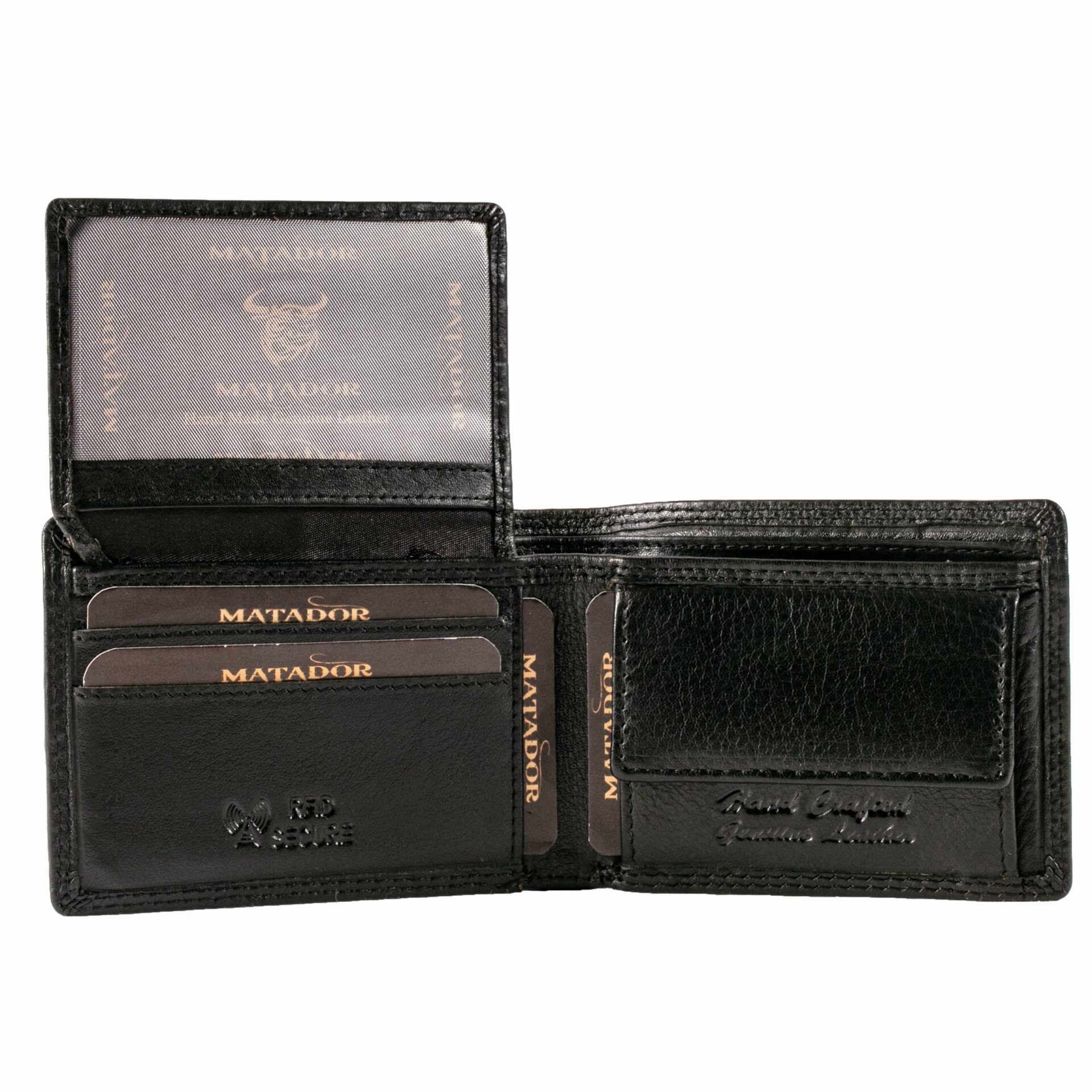 MATADOR Model 77 – Elegancki Czarny Portfel RFID w Pozycji Poziomej