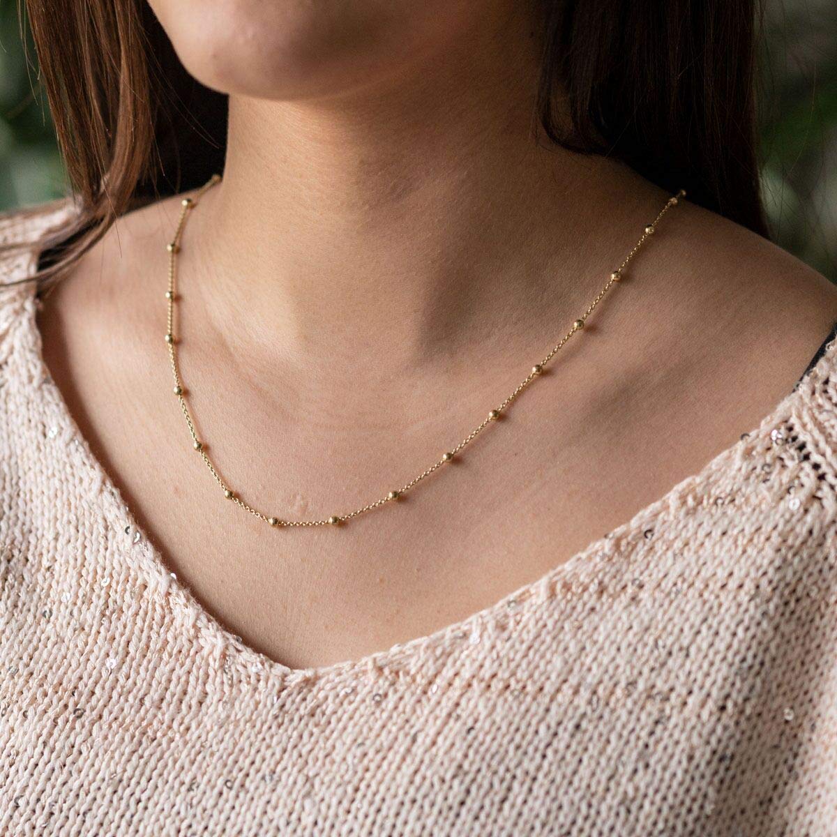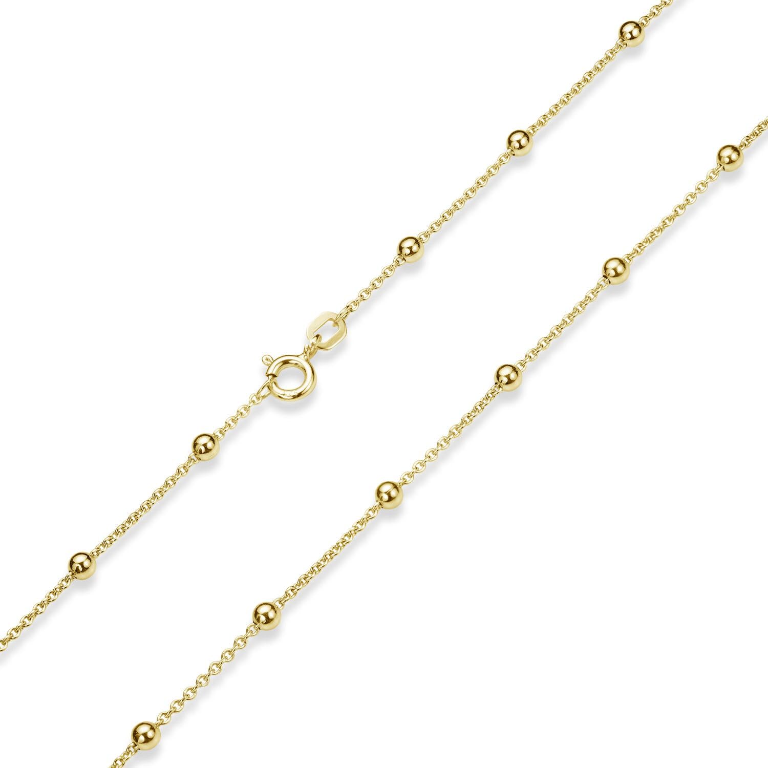 Materia K104 to elegancki damski łańcuszek z kulkami wykonany ze srebra próby 925, który został pozłacany, aby nadać mu jeszcze większego blasku i wyjątkowego wyglądu. Dostępny w różnych długościach – 40, 45, 50, 55, 60 oraz 70 cm, ten piękny dodatek doskonale uzupełni każdą stylizację.