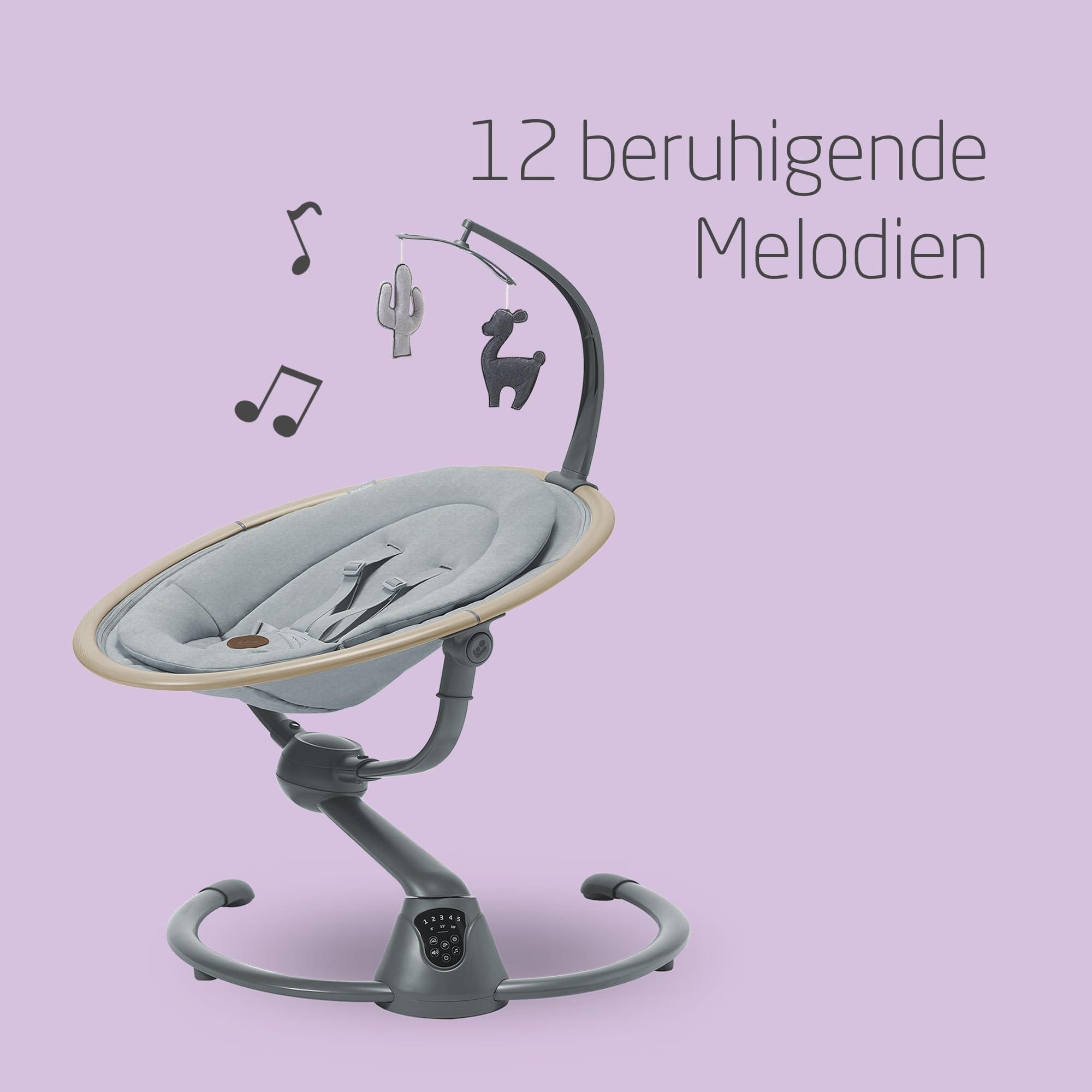 ✅ 12 KOJĄCYCH MELODII:: 12 KOJĄCYCH MELODII: huśtawka dla dzieci Cassia ma 12 kojących melodii i dźwięków natury, które w połączeniu z delikatnym ruchem bujania łagodnie uspokajają dziecko