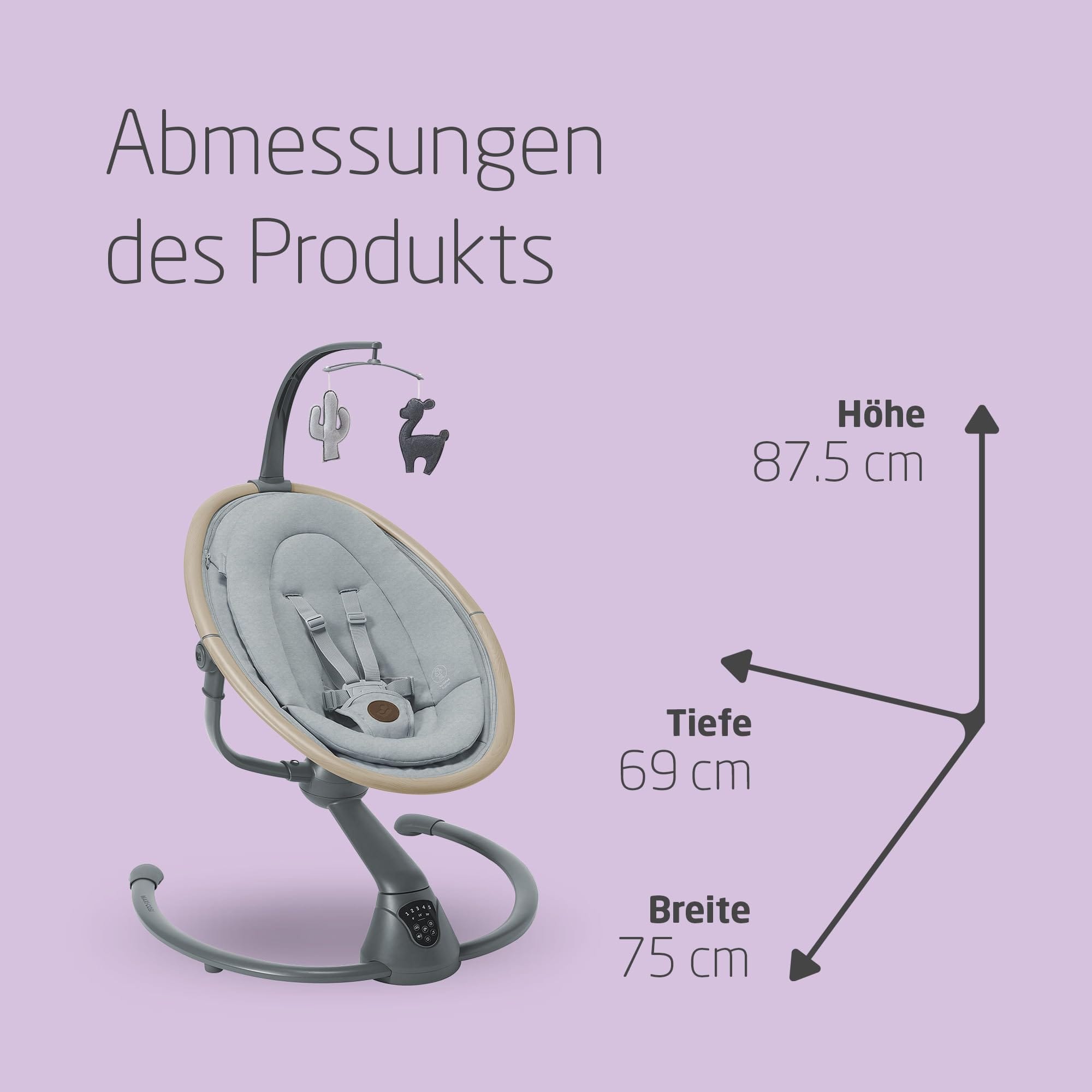 Maxi-Cosi Cassia Huśtawka Elektryczna Dla Niemowląt, 0-6 Mies., Maks. 9 kg, Bujaczek Leżaczek, 12 Melodii, Obrac. Siedziska 360°, Autowykryw. Ruchu, 5 Prędk., 2 Poz. Odchylenia, Classic Beige