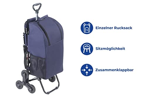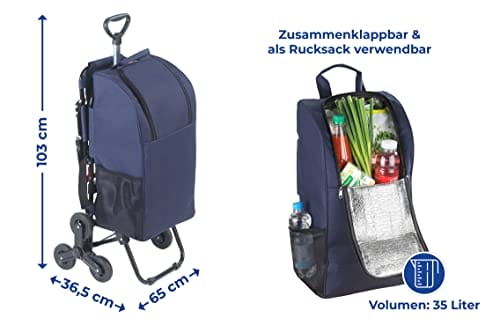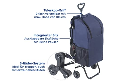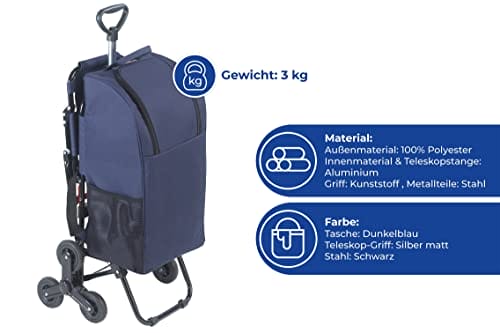 Maximex Wózek na zakupy z systemem 3-kołowym do podciągania schodów, aluminiowy, niebieski, 65 x 36,5 x 103 cm
