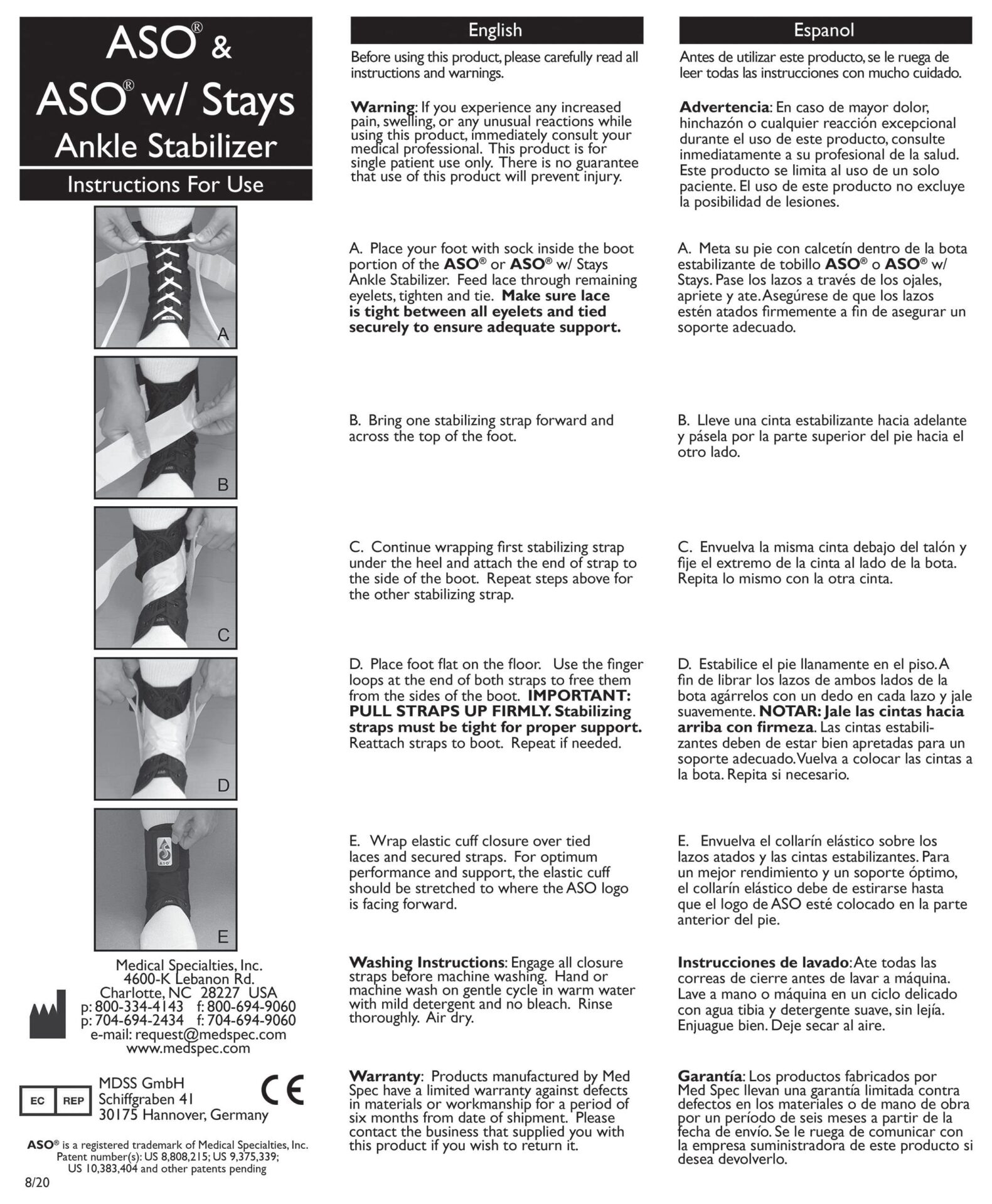 4. **Wsparcie w rehabilitacji**: Med Spec 264004 Aso jest idealnym rozwiązaniem dla osób w trakcie rehabilitacji po urazach stawu skokowego. Stabilizator wspomaga proces gojenia, jednocześnie umożliwiając kontynuację aktywności fizycznej w bezpieczny sposób.