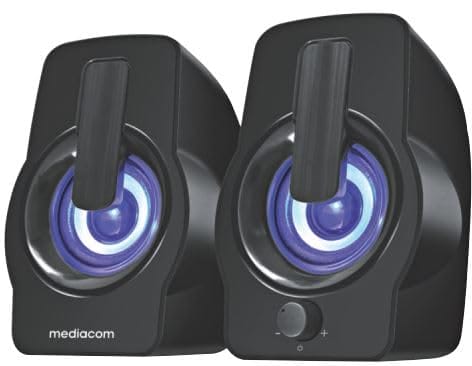 Głośniki MEDIACOM Media Sound 2.0 A50 Marka zapewniają doskonałą jakość dźwięku, dzięki czemu każda melodia brzmi wyjątkowo klarownie i pełnie. Ich kompaktowy rozmiar sprawia, że są idealne do użytku w domu, biurze czy na podróżach.