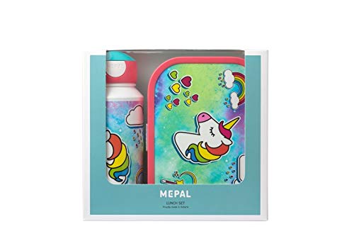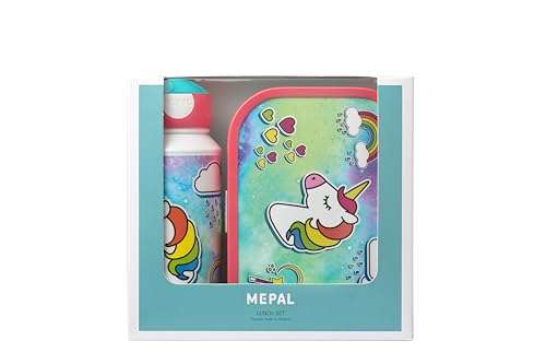 Mepal Zestaw Śniadaniowy dla Dzieci z Butelką na Napoje Typu Pop-Up i Pudełkiem na Lunch do Szkoły lub w Podróż Bez BPA 400 Ml + 750 Ml Jednorożec