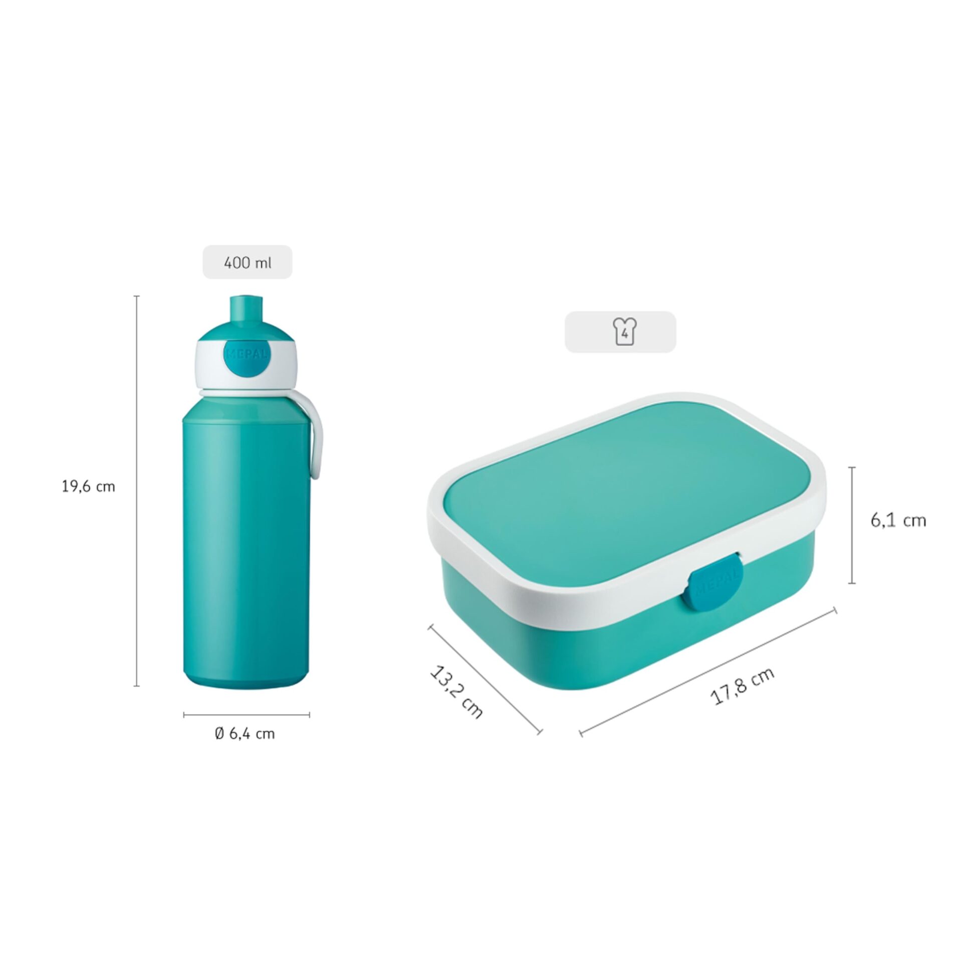 Zestaw śniadaniowy Mepal to kompletny zestaw dla małego ucznia, składający się z butelki na napoję i praktycznego pudełka na lunch. Butelka typu Pop-Up (o pojemności 400 ml) oraz pudełko na lunch (o pojemności 750 ml) zostały zaprojektowane z myślą o dzieciach. Idealnie sprawdzają się zarówno w szkole, na wycieczkach, jak i podczas aktywności sportowych.