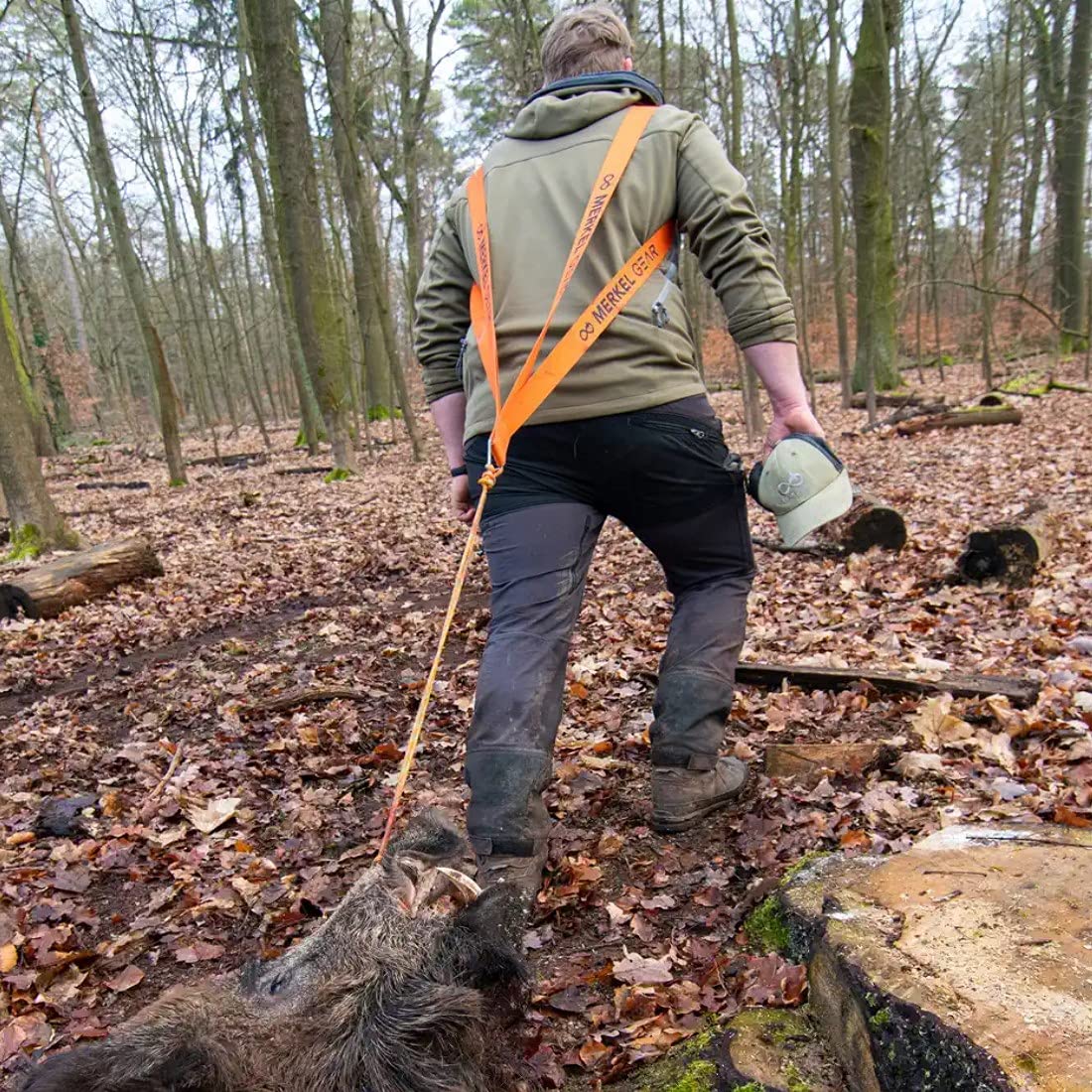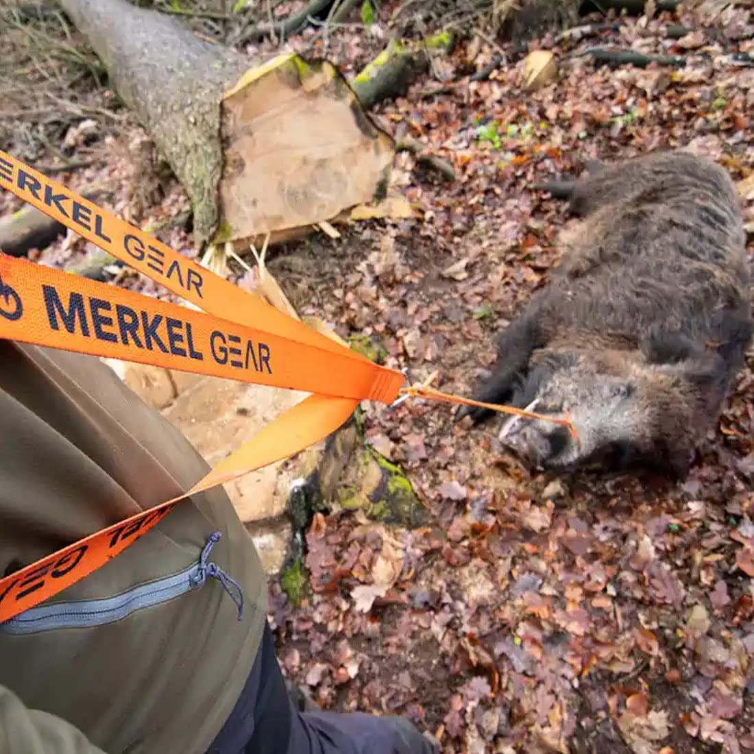 • Pomoc w górach MERKEL GEAR to proste, ale bardzo efektywne wsparcie w odrabianiu ciężkiej dziczyzny. Mocny, ocynkowany hak stalowy na taśmie o szerokości 4,7 cm w kolorze pomarańczowym sygnałowym wytrzymuje obciążenie do 400 kg.