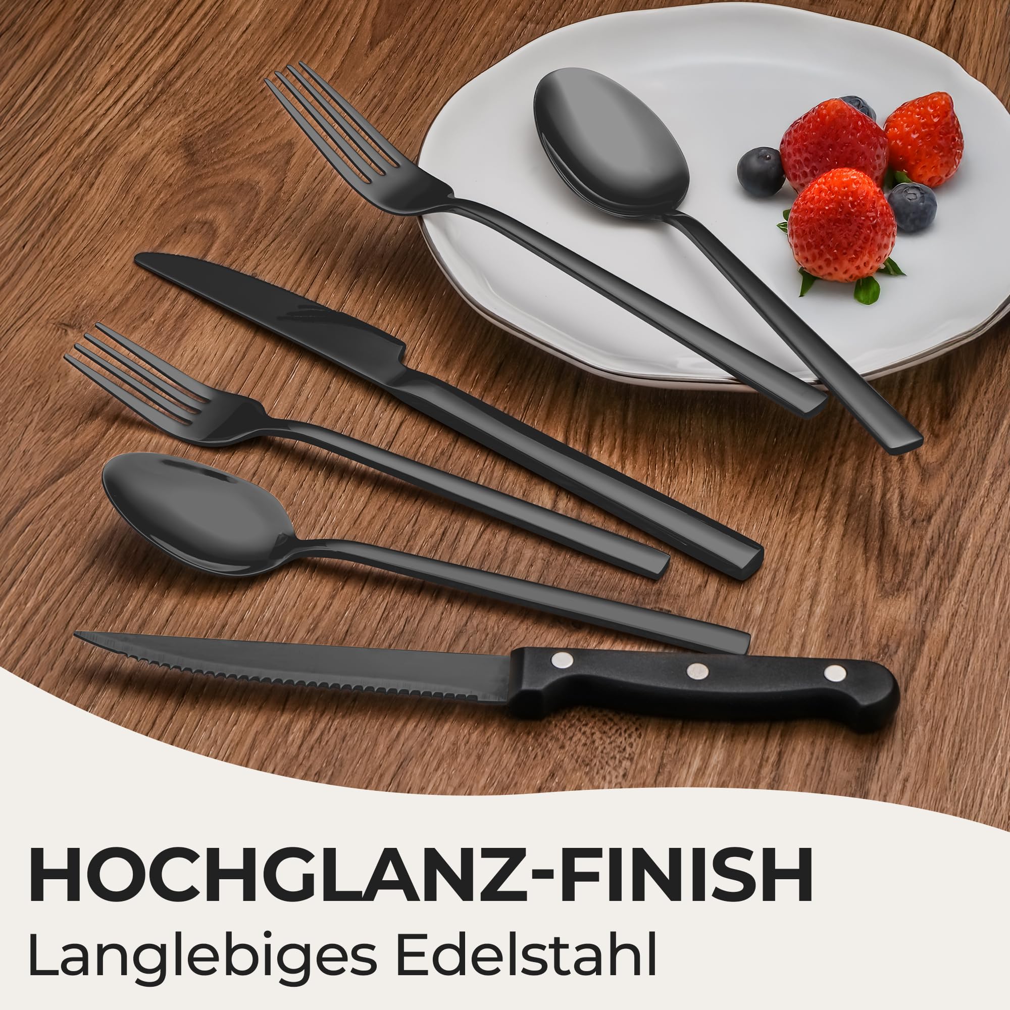 Jednym z kluczowych atutów MIAMIO jest jego wykonanie z wysokiej jakości stali nierdzewnej, co zapewnia nie tylko trwałość, ale także odporność na korozję i zarysowania. Matowe wykończenie w kolorze czarnym nadaje sztućcom nowoczesny i elegancki wygląd, który doskonale wpisuje się w aktualne trendy wnętrzarskie. Dzięki temu zestaw staje się nie tylko praktycznym, ale i stylowym dodatkiem do każdej kuchni.