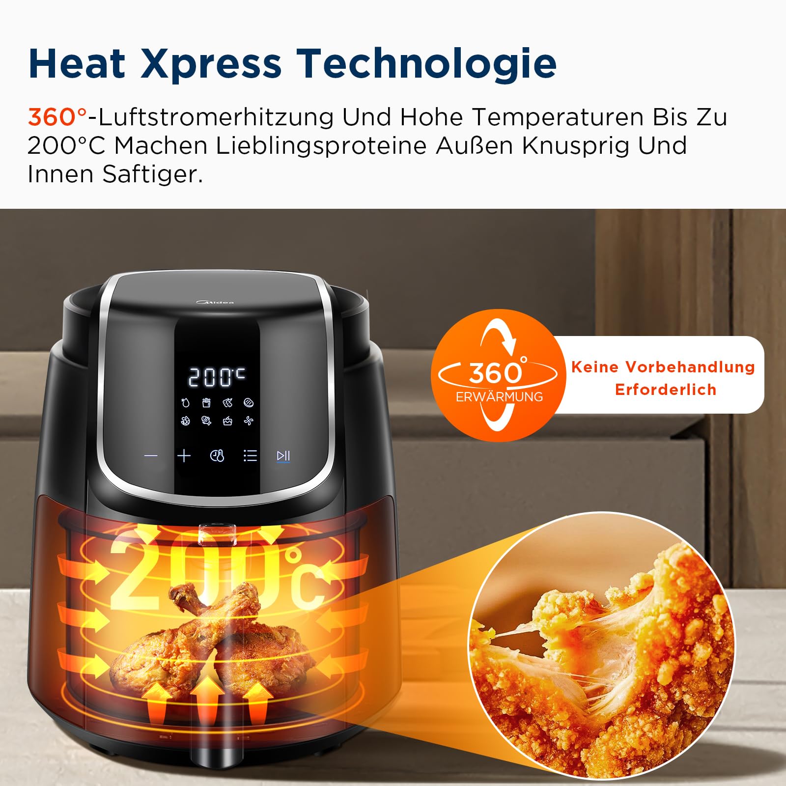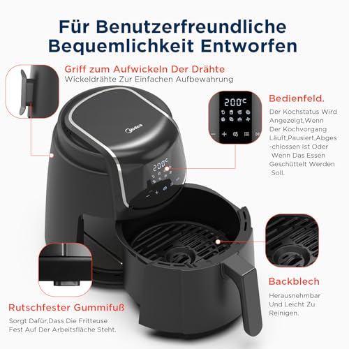 Midea MF-CN40C2 frytkownica na gorące powietrze 4 l, bezolejowa Airfryer 1500 W, 8 wstępnie zaprogramowanych trybów gotowania, 35-200°C, pieczenie, smażenie, grillowanie, rozmrażanie, alarm