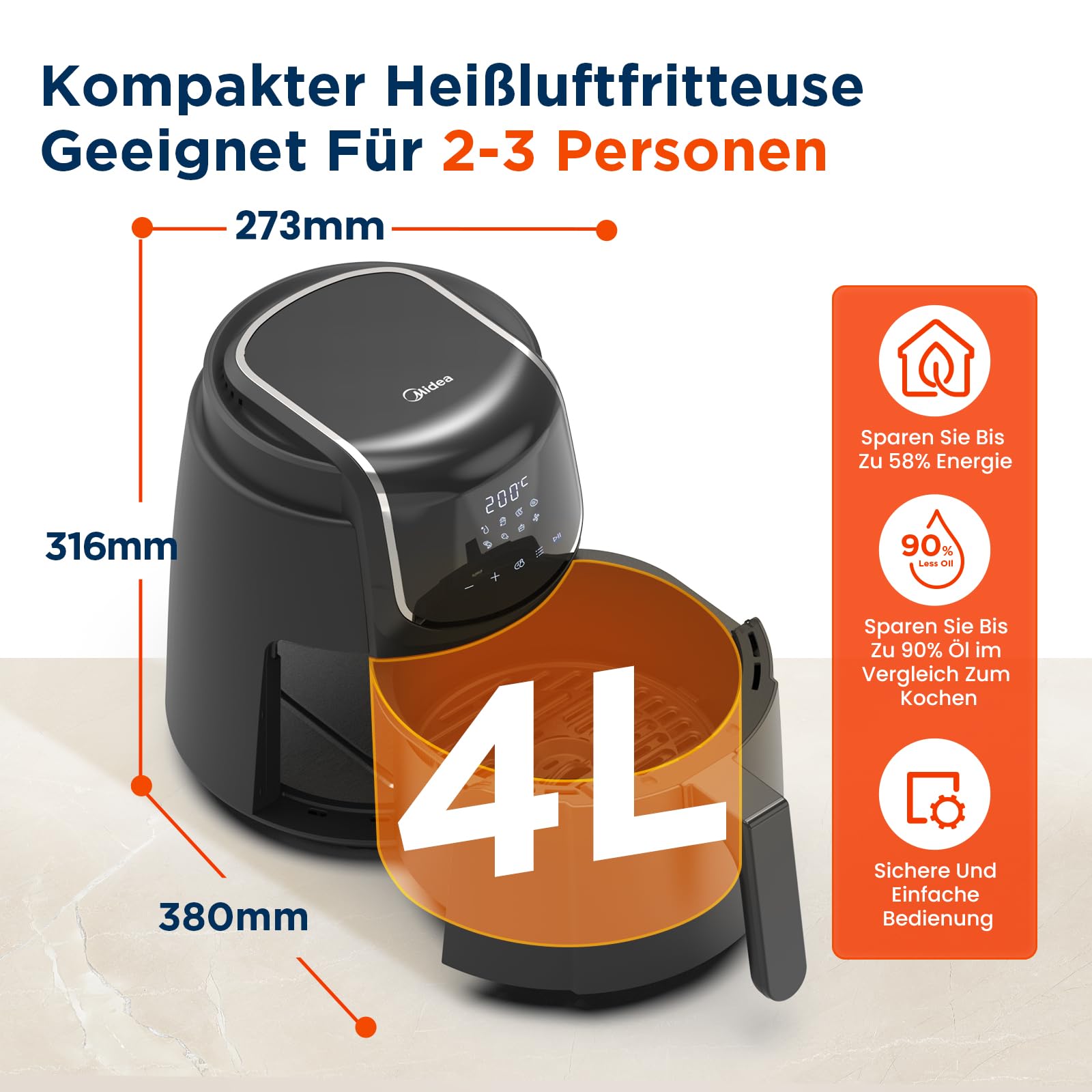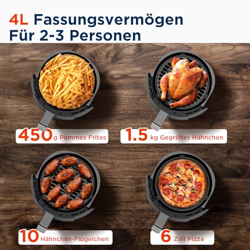 ✅ 【Kompaktowa konstrukcja】Ta kompaktowa: 【Kompaktowa konstrukcja】Ta kompaktowa frytkownica na gorące powietrze ma dużą pojemność 4 l, wystarczającą do przygotowania potraw dla 2-4 osób. Frytkownica na gorące powietrze zapewnia miejsce na 10 skrzydełek z kurczaka lub 5 tartek jajecznych. Dzięki smukłemu i stylowemu wzornictwu airfryers idea