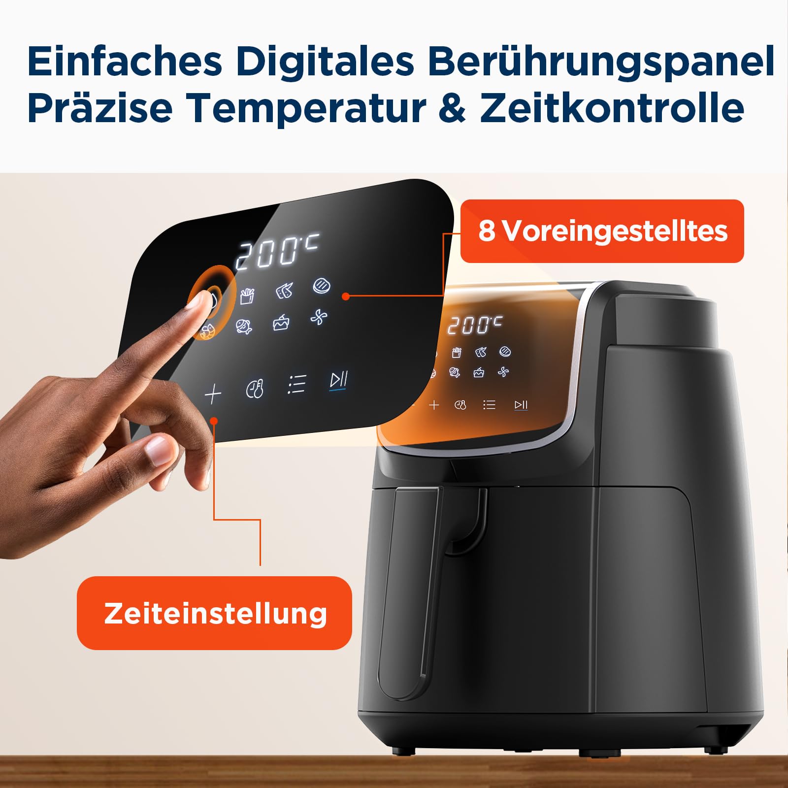 ✅ 【Przyjazna dla użytkownika】Ścięty: 【Przyjazna dla użytkownika】Ścięty cyfrowy ekran dotykowy LED ułatwia obsługę. Antypoślizgowe gumowe nóżki zapewniają, że frytkownica na gorące powietrze stoi stabilnie na powierzchni roboczej. Wyjmowane kosze nieprzywierające są wykonane z materiału przeznaczonego do kontaktu z żywnością i nadają si