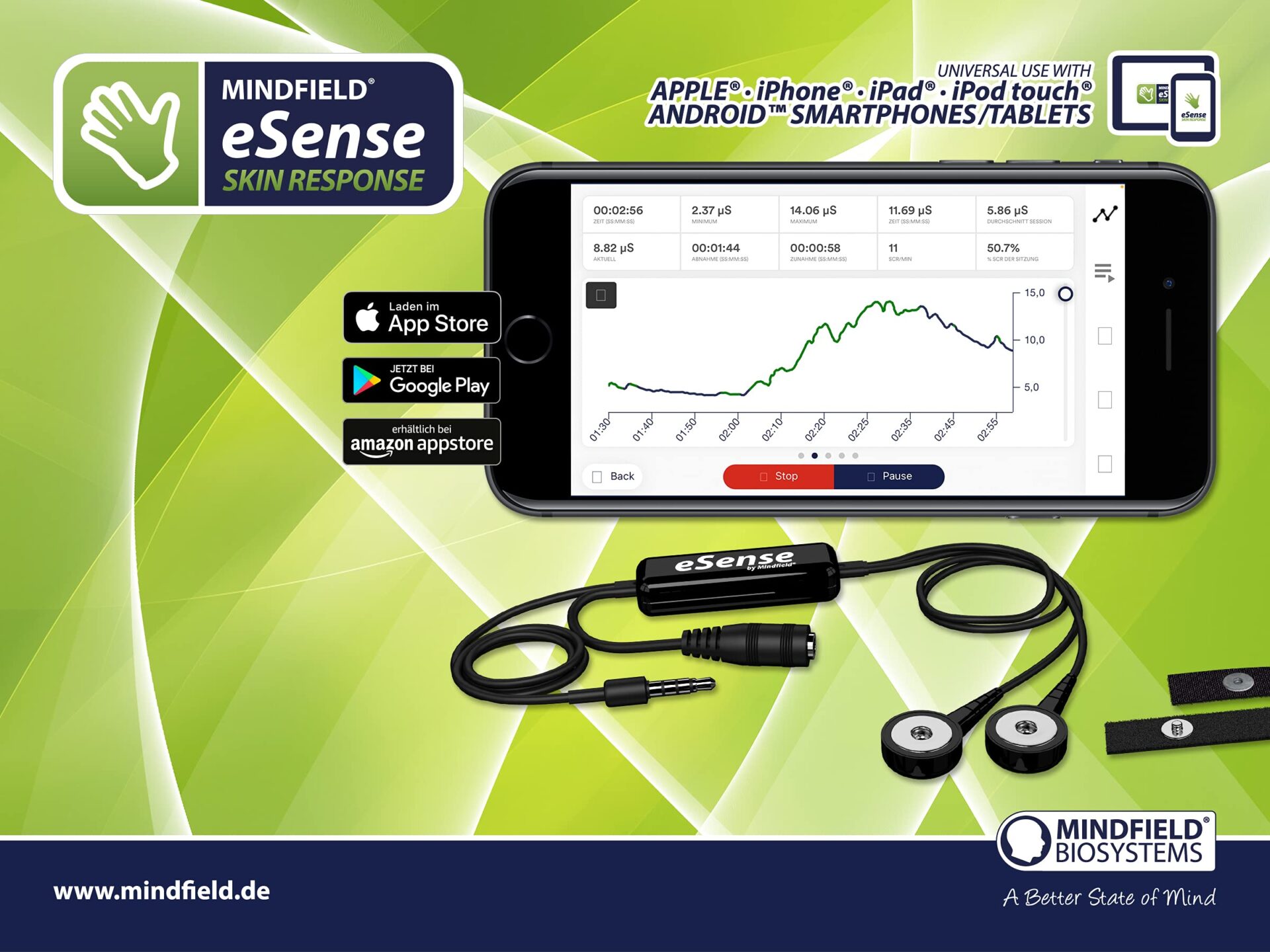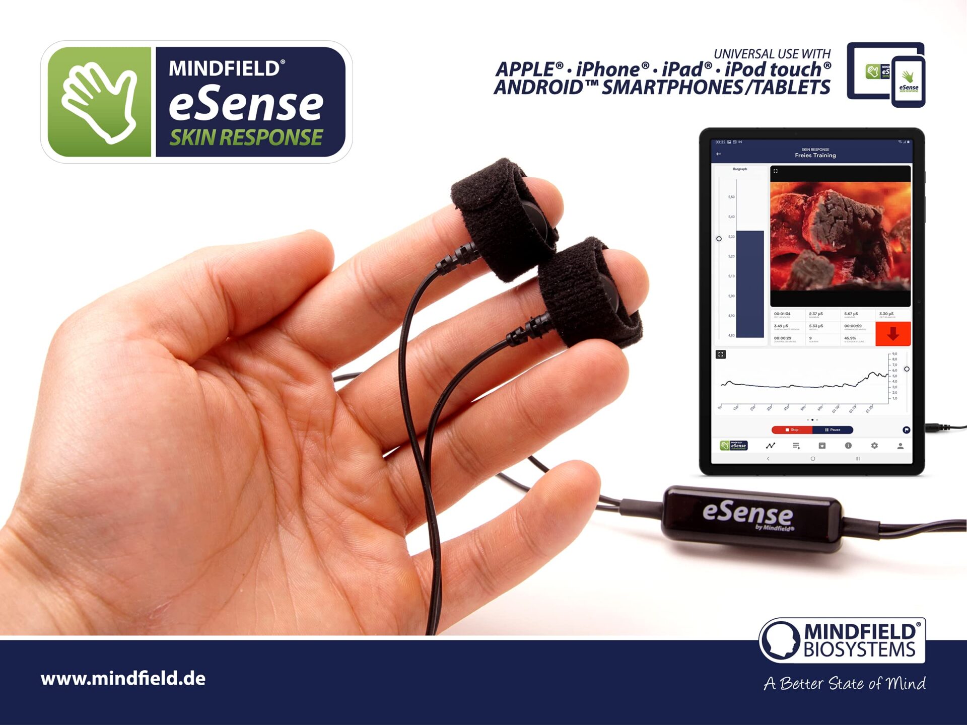 Mindfield eSense Skin Response – czujnik przewodności skóry | Trening Biofeedback i zarządzanie stresem | Z aplikacją na iPhone i Android