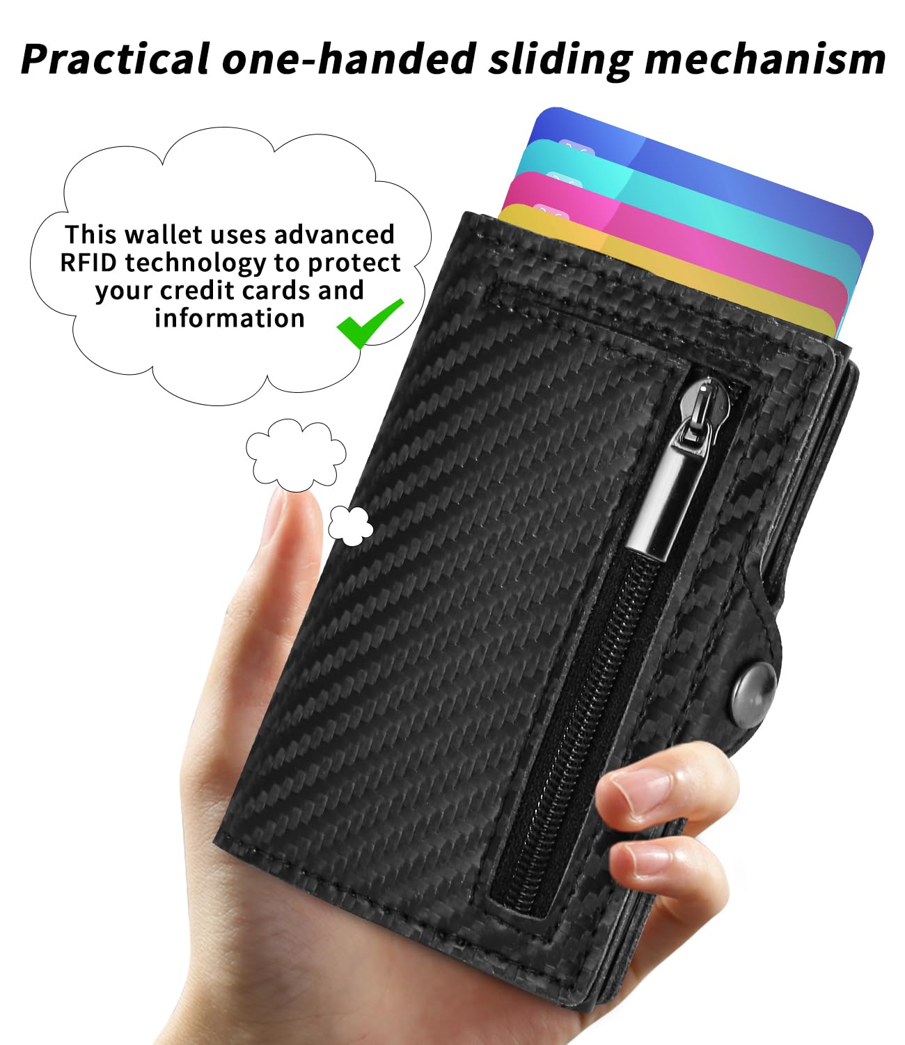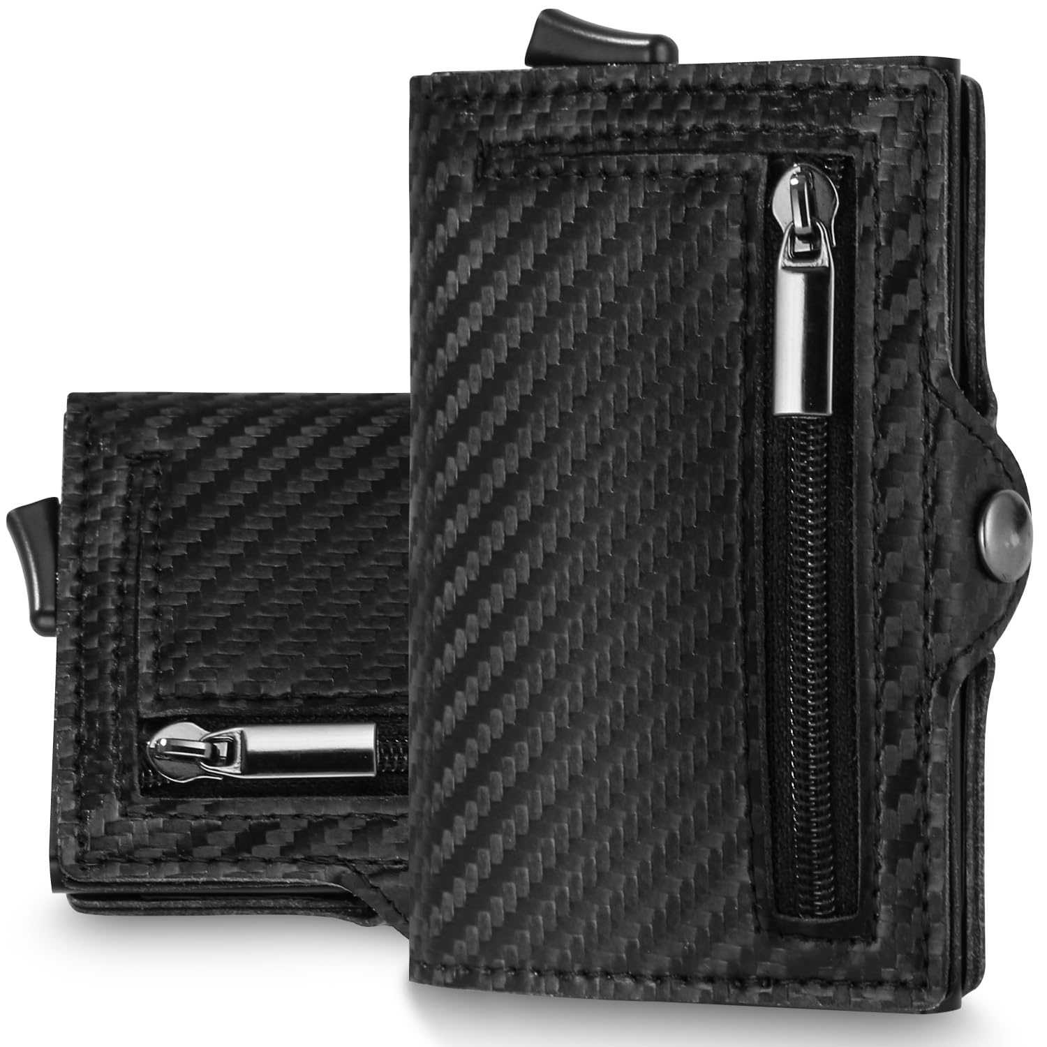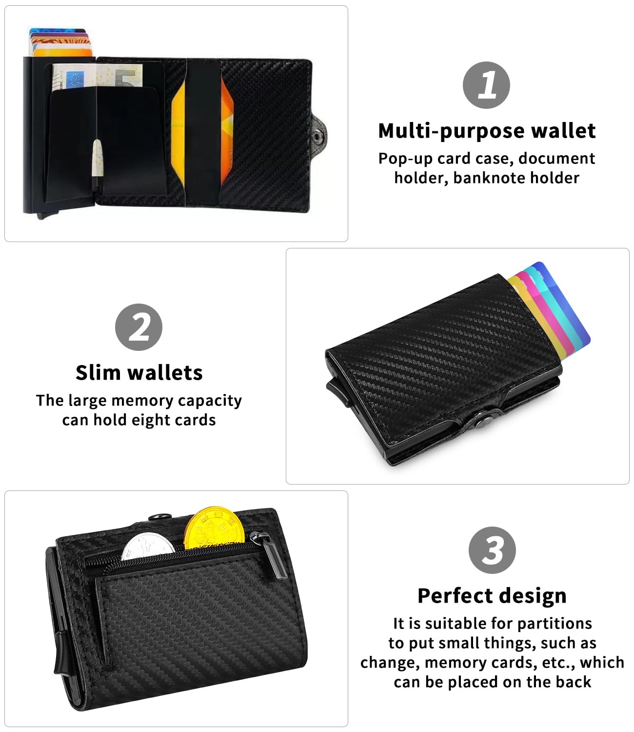 Cienki portfel z kieszonką na monety i ochroną RFID – Mini portfel męski i damski – Etui na karty kredytowe – Cienki portfel (2024 Carbon Black)