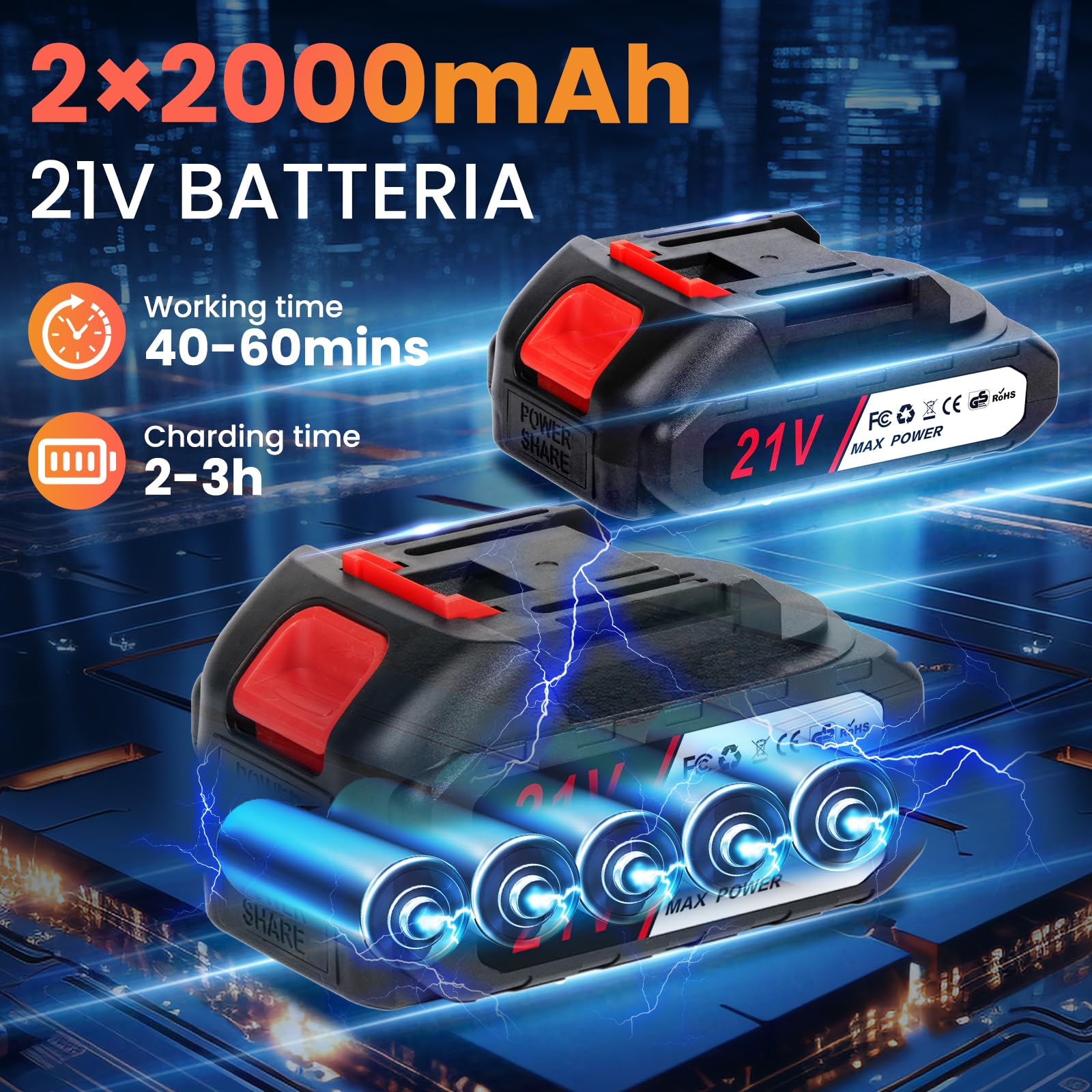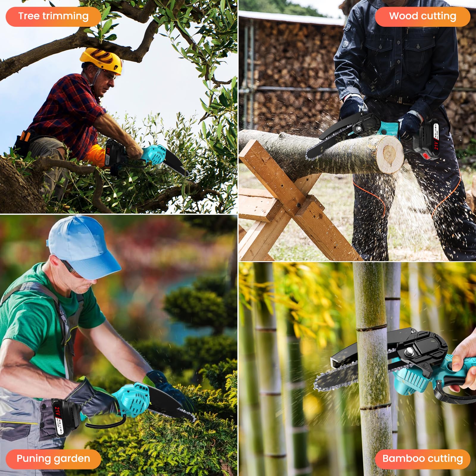 Mini piła łańcuchowa z akumulatorem 4000 mAh 15 cm elektryczna 21V 800W – 2 akumulatory 2000 mAh