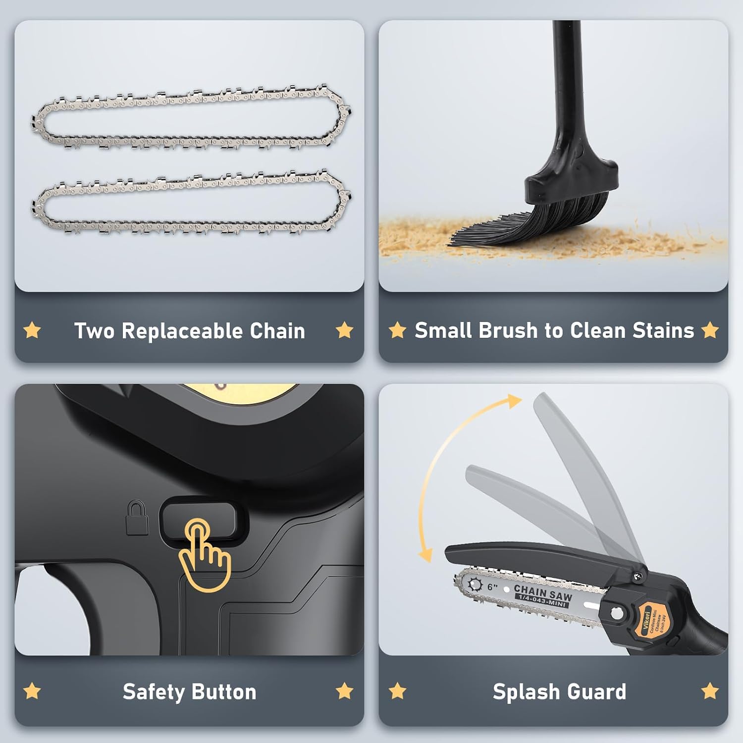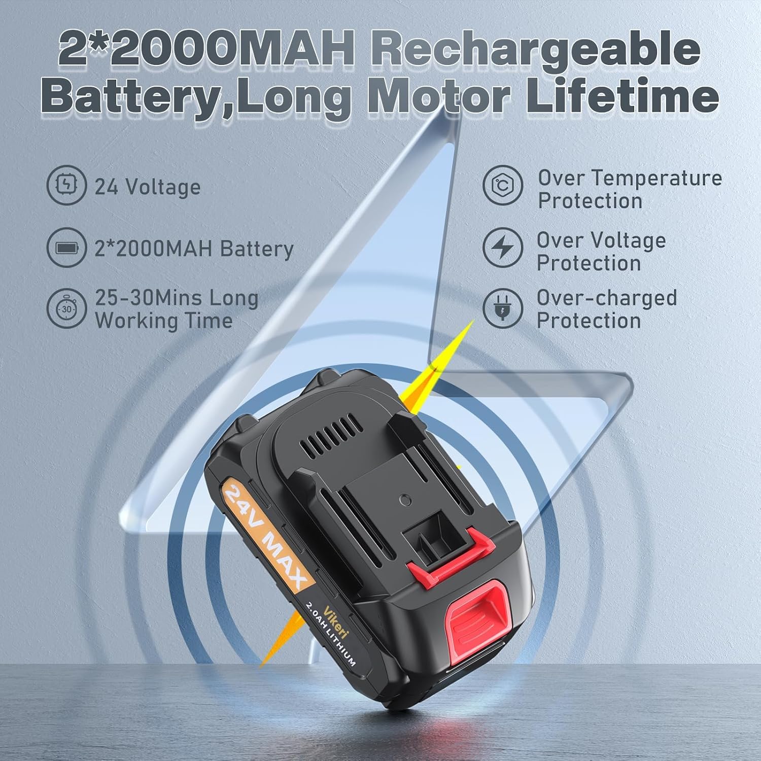 Vikeri mini piła łańcuchowa z akumulatorem to doskonałe narzędzie do cięcia drewna, nożyc ogrodowych oraz sekatorów. Wyposażona w 15 cm akumulatorową piłę z dwoma akumulatorami i dwoma łańcuchami, zapewnia niezawodną i wydajną pracę.