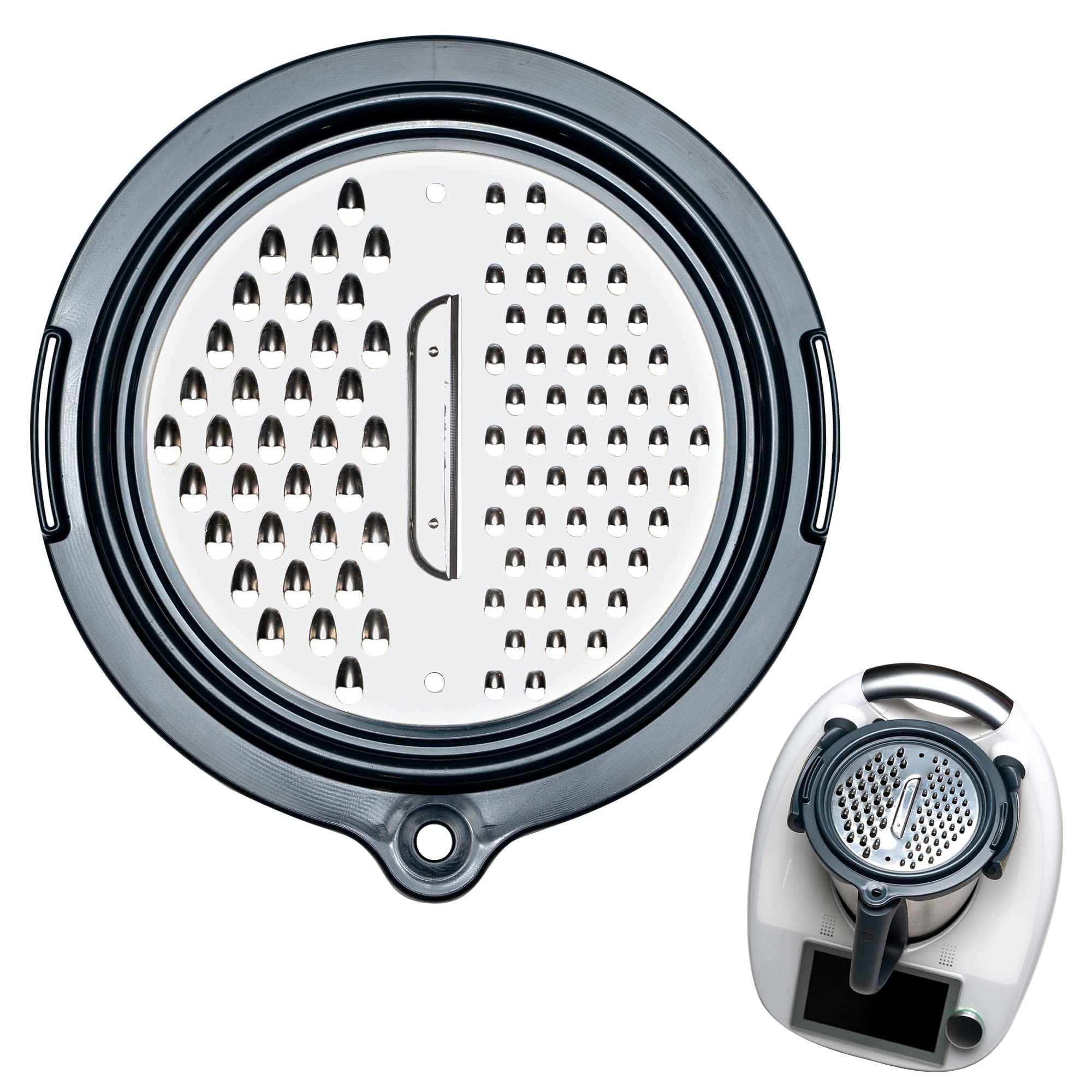 Bezpieczny i szybki: Bezpieczny i szybki rezultat: Tarka zaprojektowana specjalnie do Thermomix TM6 i TM5 idealnie pasuje do naczynia lub pokrywy, co sprawia, że tarcie jest bezpieczne i bezproblemowe dla Ciebie i Twojego urządzenia.
