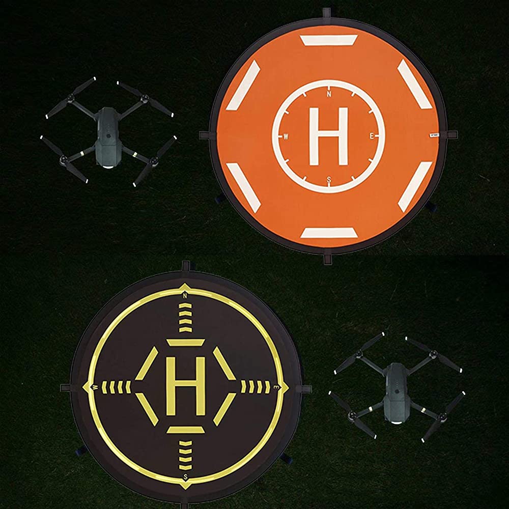 Zestaw zawiera miejsce: Zestaw zawiera miejsce lądowania 1 x dronów 55 cm / 21,6 cali, 4 x szpilki do przymocowania miejsca lądowania dronów do ziemi, nawet w wietrznych środowiskach, 8 x jasnoczerwone, odblaskowe paski klejenia, aby bezpiecznie do domu, nawet podczas nocnych lotów do latania, 1 x stabilna nylonowa torba n