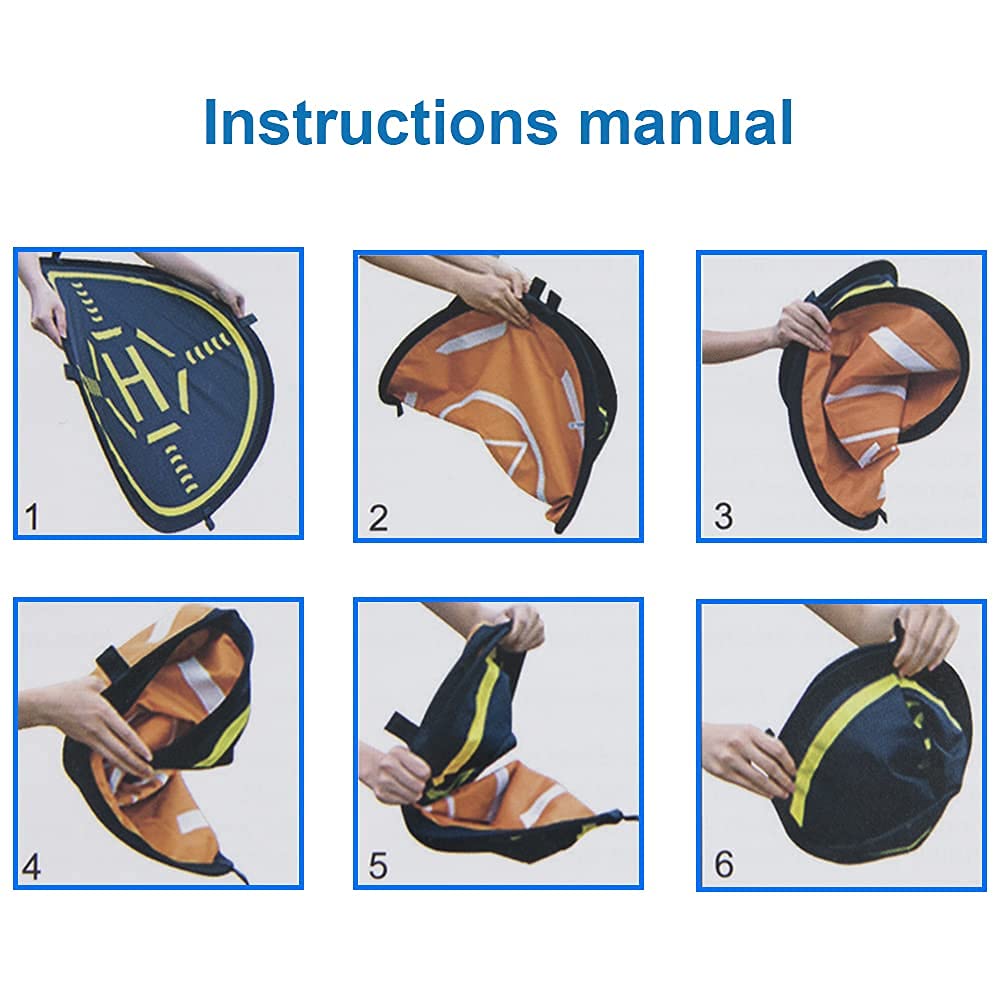 Łatwy w użyciu: Łatwy w użyciu po prostu otwórz nylonową torbę nośnikową, a miejsce lądowania dronów rozwija się samodzielnie. Przełóż długopisy przez każdą pętlę i przymocuj helikopadę do podłogi. Po tym, jak dron wyląduje bezpiecznie, usuń szpilki z pętli, chwyć miejsce lądowania dronów po obu stronach i obróć mi