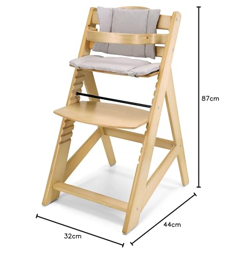 Moby-System Woody Wysokie Krzesełko Dziecięce, z Regulacją Wysokości, Drewniane Krzesełko do Karmienia, Siedzenie z Poduszką, 3-punktowy Pas Bezpiecze