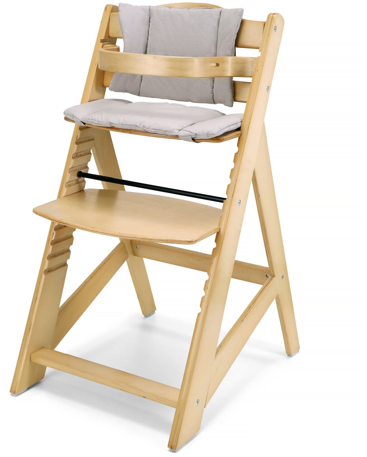 Moby-System Woody Wysokie Krzesełko Dziecięce, z Regulacją Wysokości, Drewniane Krzesełko do Karmienia, Siedzenie z Poduszką, 3-punktowy Pas Bezpieczeństwa, Lite Drewno
