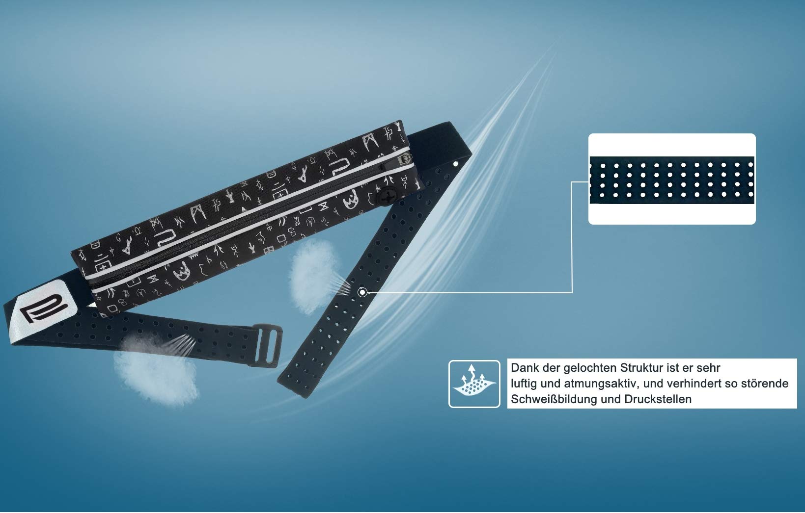 • Nowoczesny i bardzo lekki pasek do biegania – bardzo lekki, bez ograniczeń ruchu, kosztowności, takie jak telefon komórkowy lub klucze, pozostają niewidoczne, zabezpieczone i bezpiecznie przechowywane