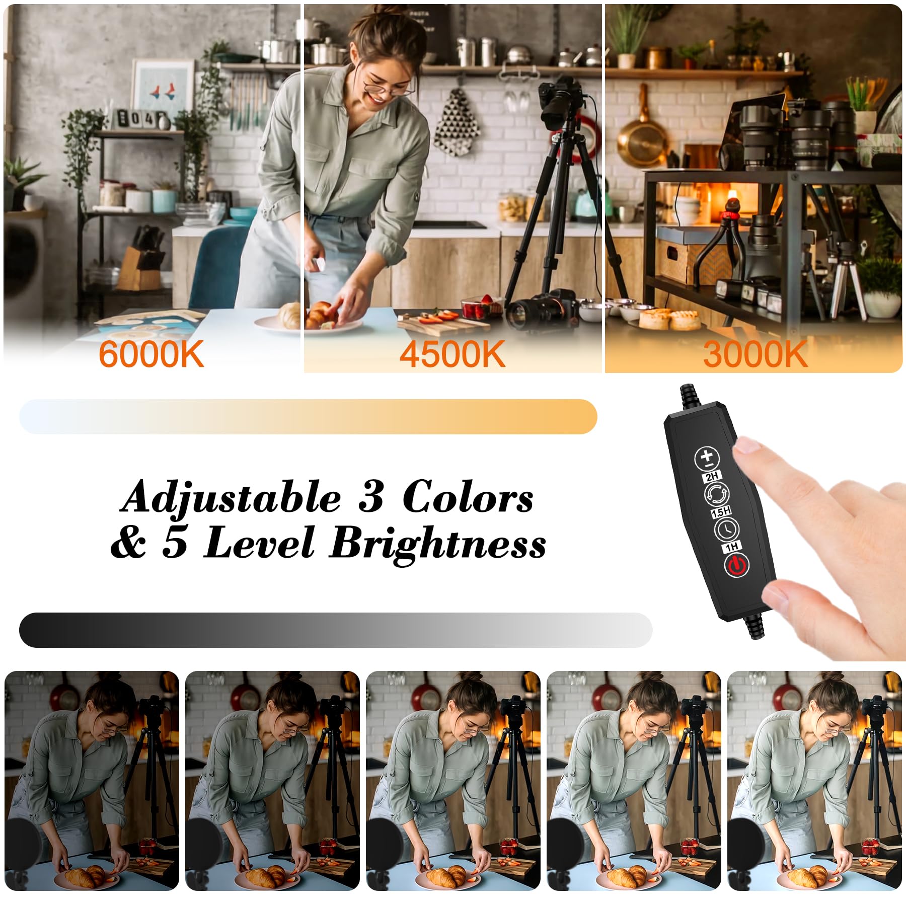 ✅ 3 temperatury barwowe: 3 temperatury barwowe i 5 poziomów jasności: To oświetlenie do nagrywania wideo ma 3 ustawienia temperatury barwowej (ciepłe 3000K/naturalne 4500K/zimne 6000K) i 5 poziomów jasności. Możesz łatwo dostosować oświetlenie, aby idealnie pasowało do twojej skóry i otoczenia, przekształcając swoje biuro d
