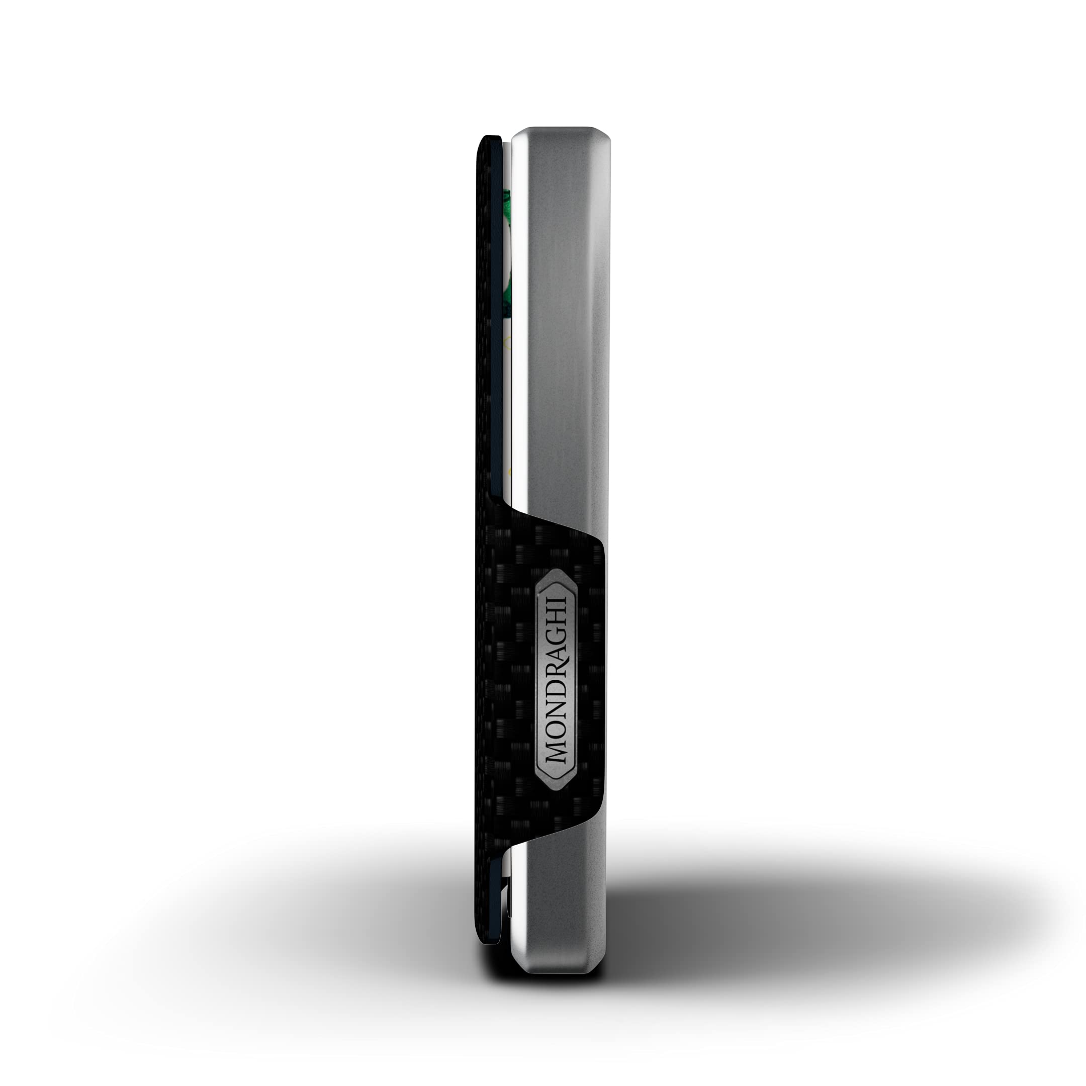 Marka Mondraghi wprowadza na rynek model w kolorze carbon czarnym, który łączy w sobie nowoczesny design z wysokiej jakości materiałami. Portfel waży zaledwie 22 gramy, co czyni go jednym z najlżejszych na rynku. Jest wykonany z wytrzymałego, stabilnego lekkiego metalu, który jest nie tylko korozjo- i antimagnetyczny, ale także odporny na codzienne zarysowania. Taka konstrukcja to gwarancja, że portfel przetrwa nawet najcięższe warunki eksploatacji.