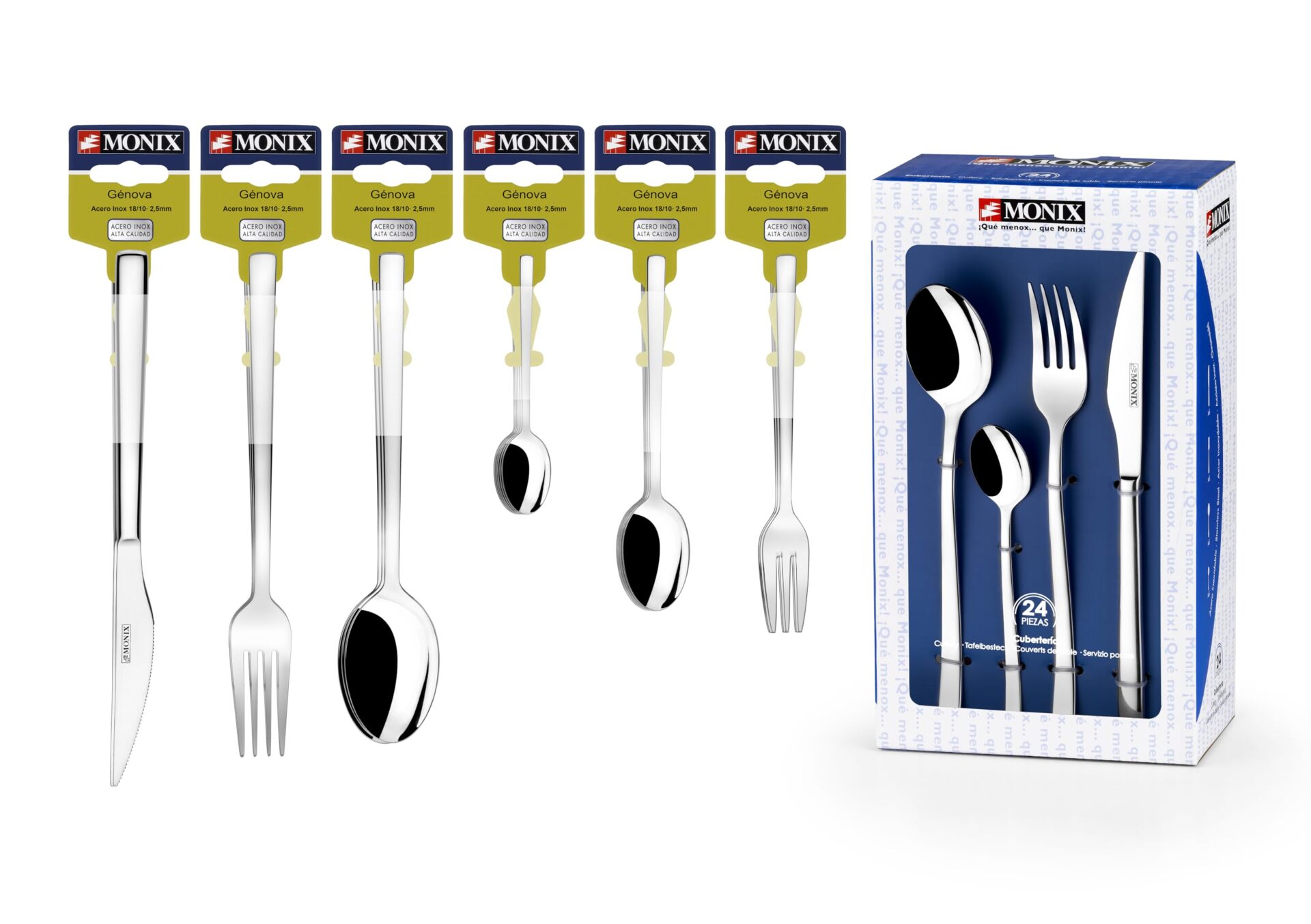 Monix Genova 24-częściowy zestaw sztućców, z nożem do steków, stal nierdzewna 18/10, nowoczesne wzornictwo, polerowane, grubość 2,5 mm, dla 6 osób