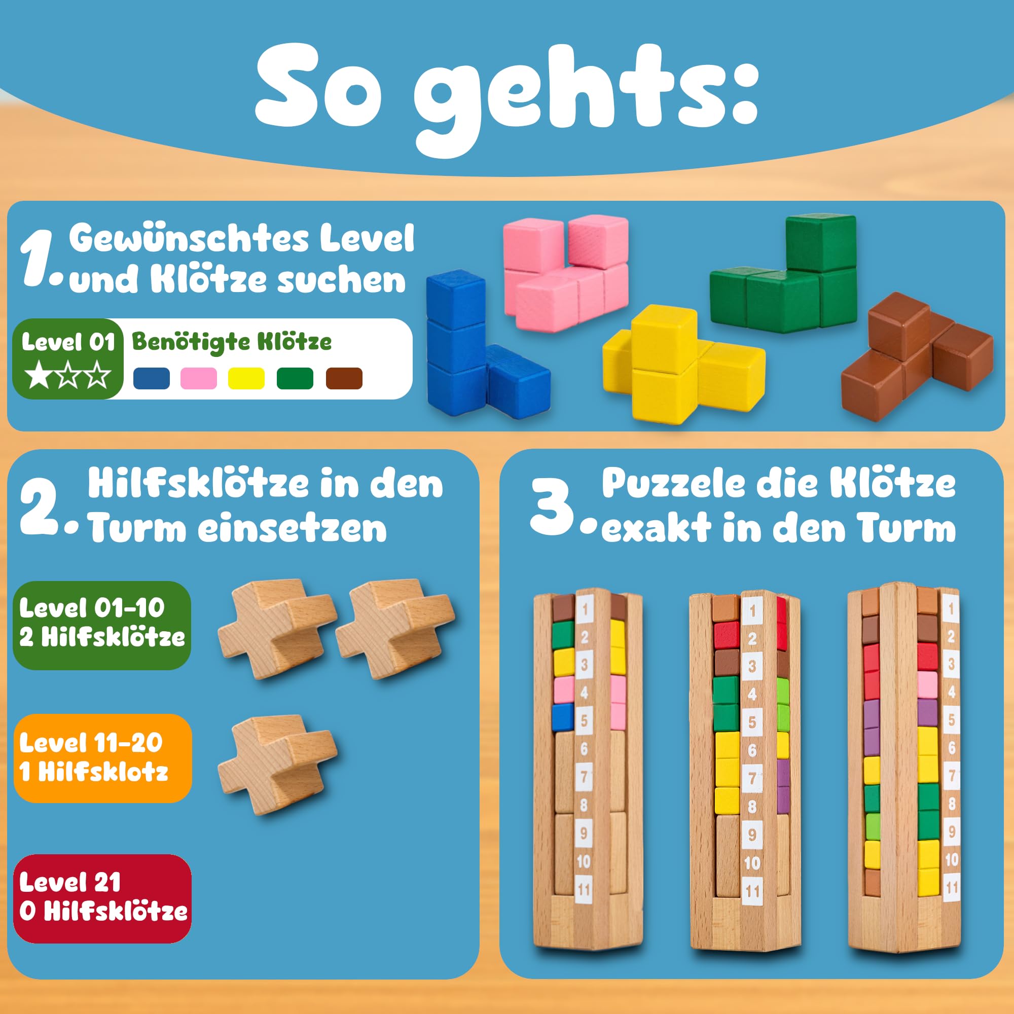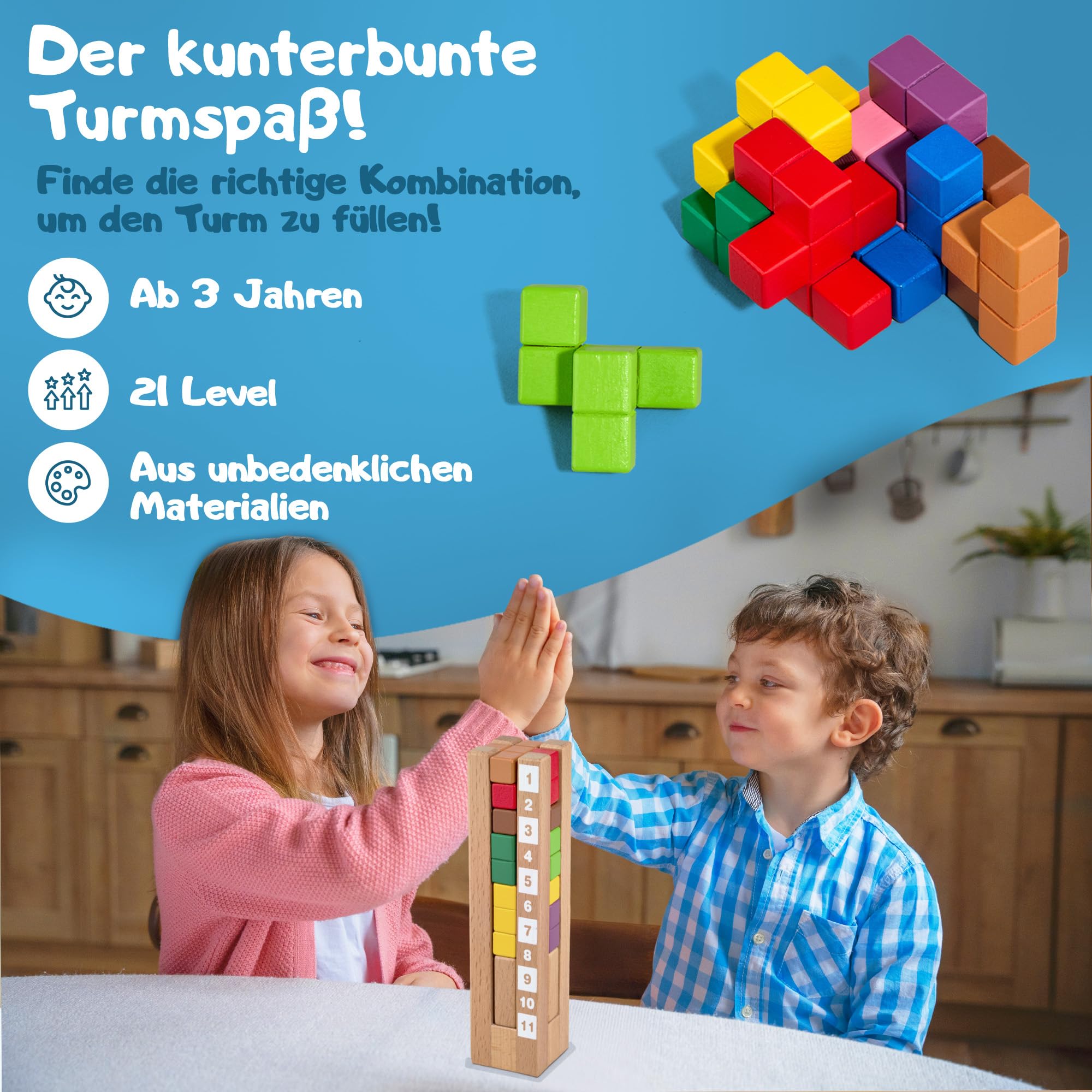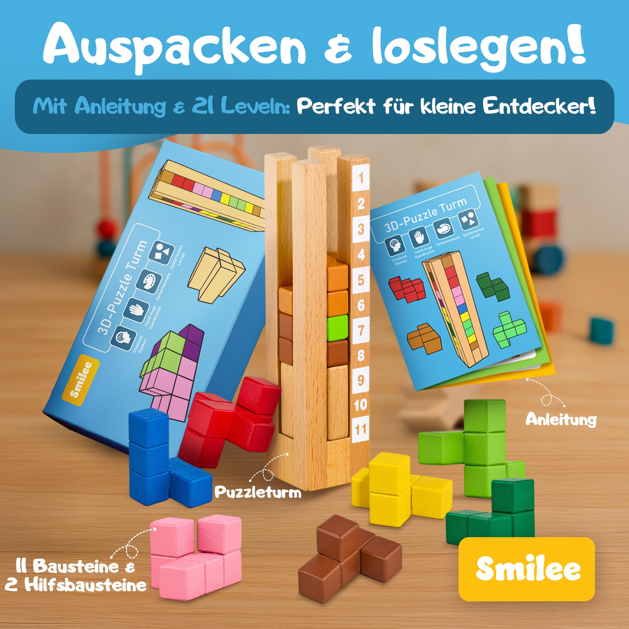 Puzzle Brain Tower to wyjątkowa drewniana gra logiczna Montessori, stworzona z myślą o dzieciach od 3. roku życia. Jej unikalne cechy sprawiają, że wyróżnia się na tle konkurencji i staje się niezbędnym elementem w edukacyjnej zabawie.