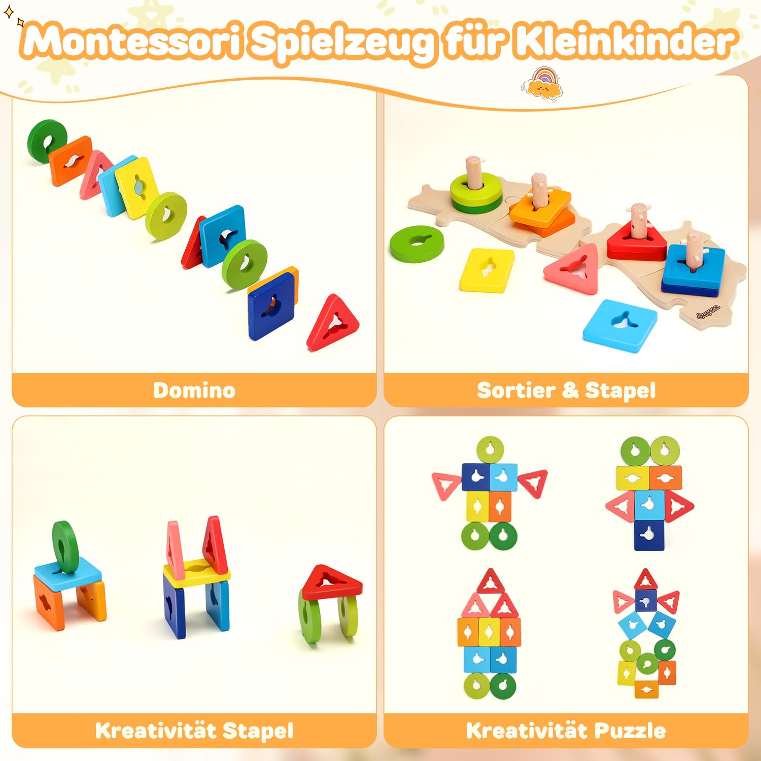 Mystooy Montessori Drewniana Zabawka dla Dzieci 1-3 lata – Puzzle i Układanka to must-have dla każdego rodzica, który pragnie wspierać rozwój swojego dziecka w sposób kreatywny i bezpieczny. Dzięki unikalnym cechom, które łączą edukację z zabawą, jest to produkt, który wyróżnia się na rynku i z pewnością przyniesie radość oraz korzyści edukacyjne każdemu maluchowi.