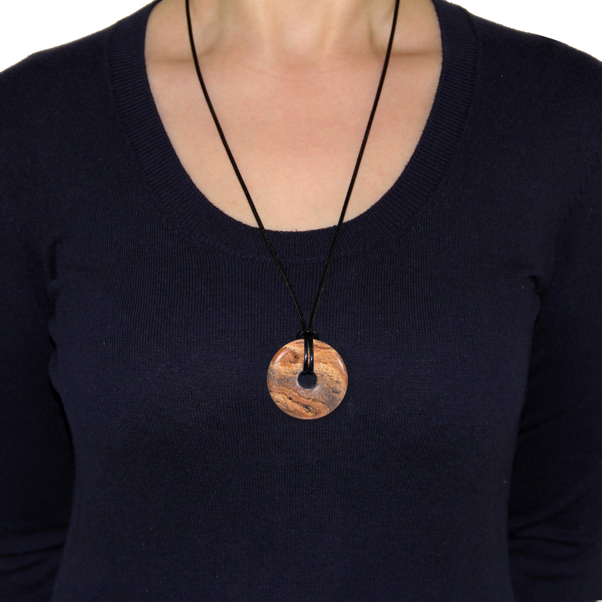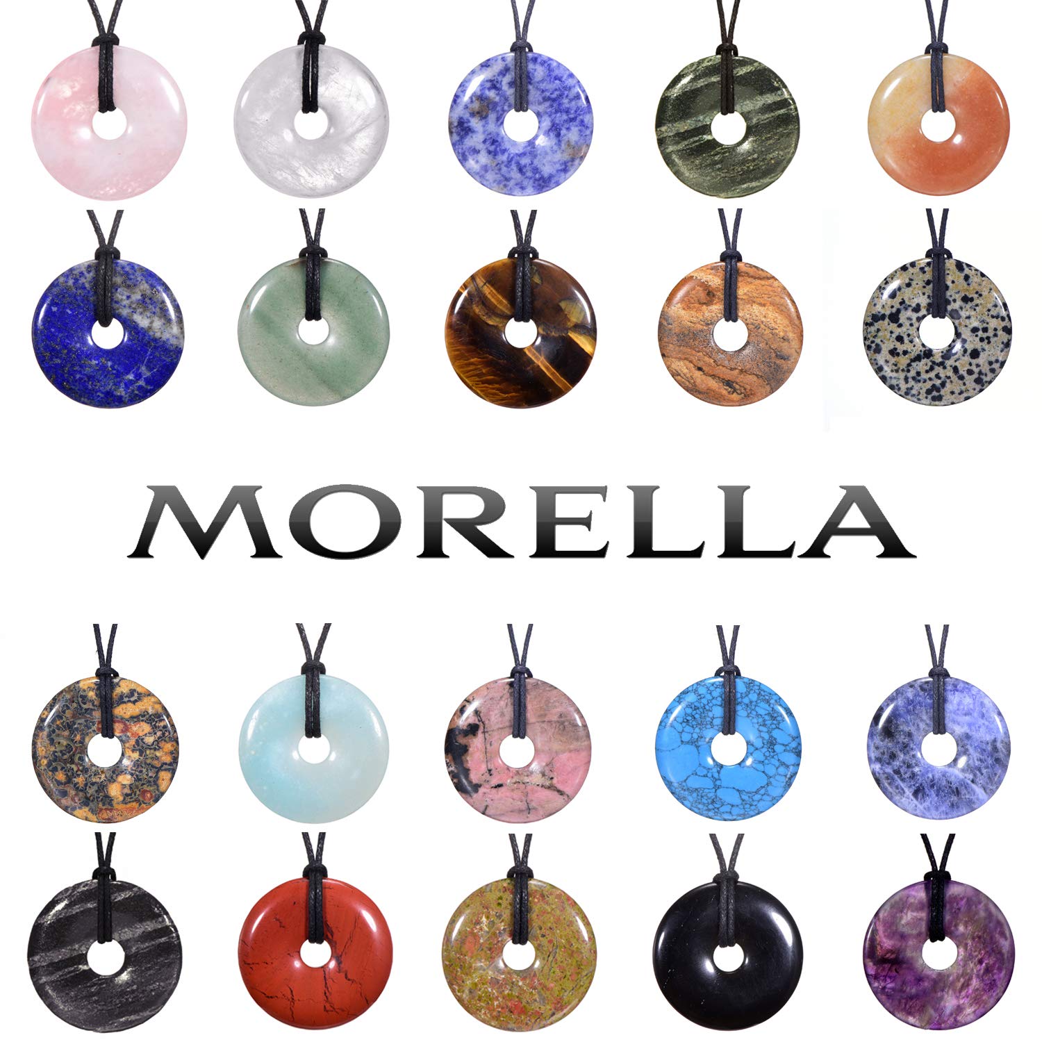 Morella Naszyjnik damski 80 cm z zawieszką typu donut z kamienia szlachetnego w aksamitnym woreczku