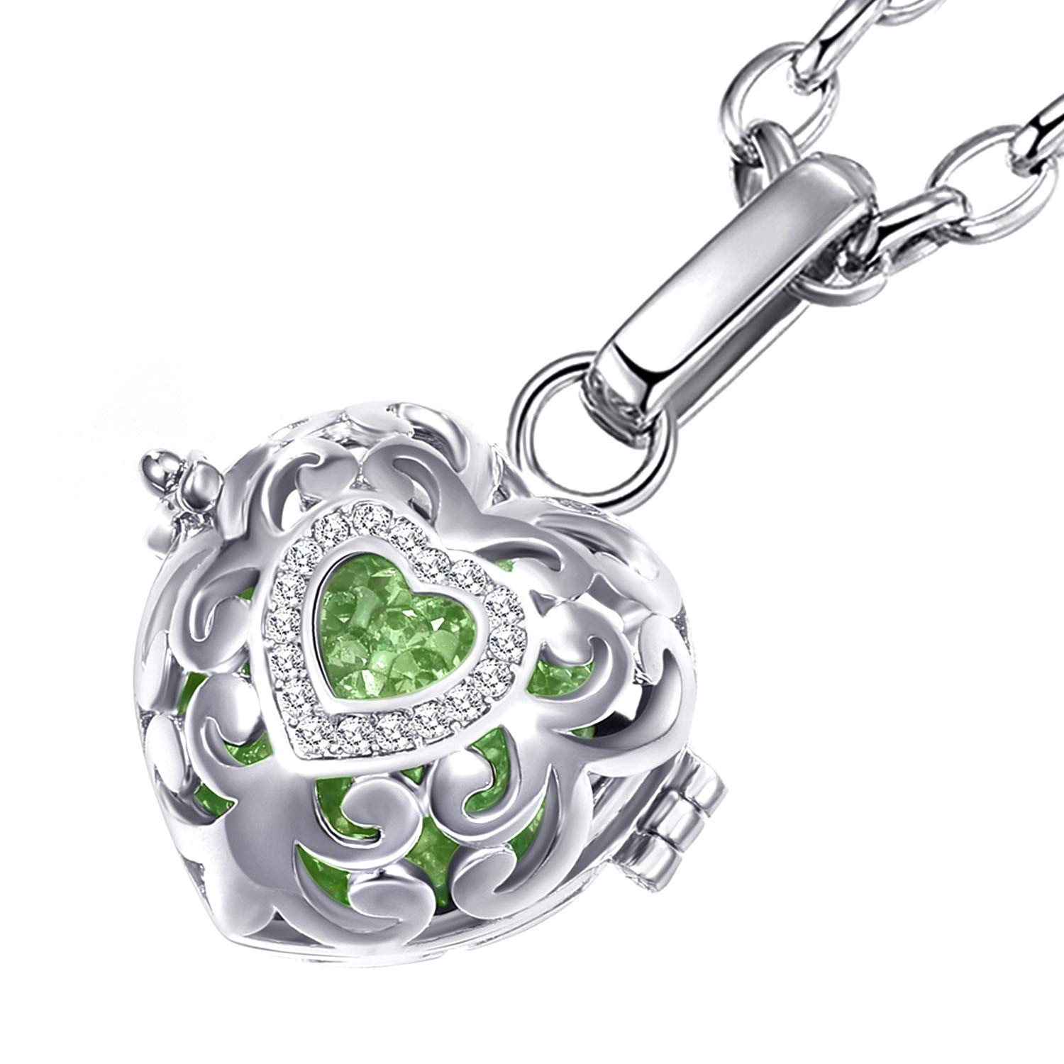 Jego głównym elementem jest uroczy wisiorek w kształcie serduszka, ozdobiony błyszczącymi cyrkoniami, które dodają mu blasku i elegancji. Dodatkowym elementem jest kula dźwięcząca, również ozdobiona cyrkoniami, która delikatnie brzęczy przy każdym ruchu, dodając naszyjnikowi unikalnego charakteru.