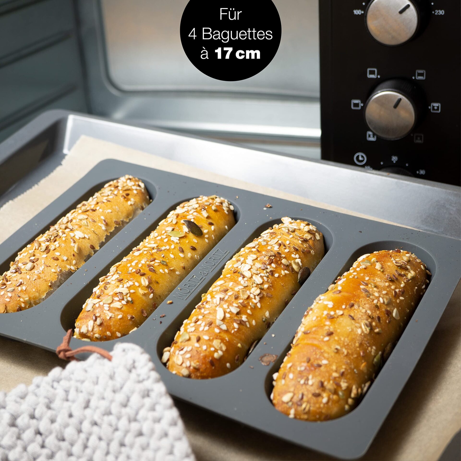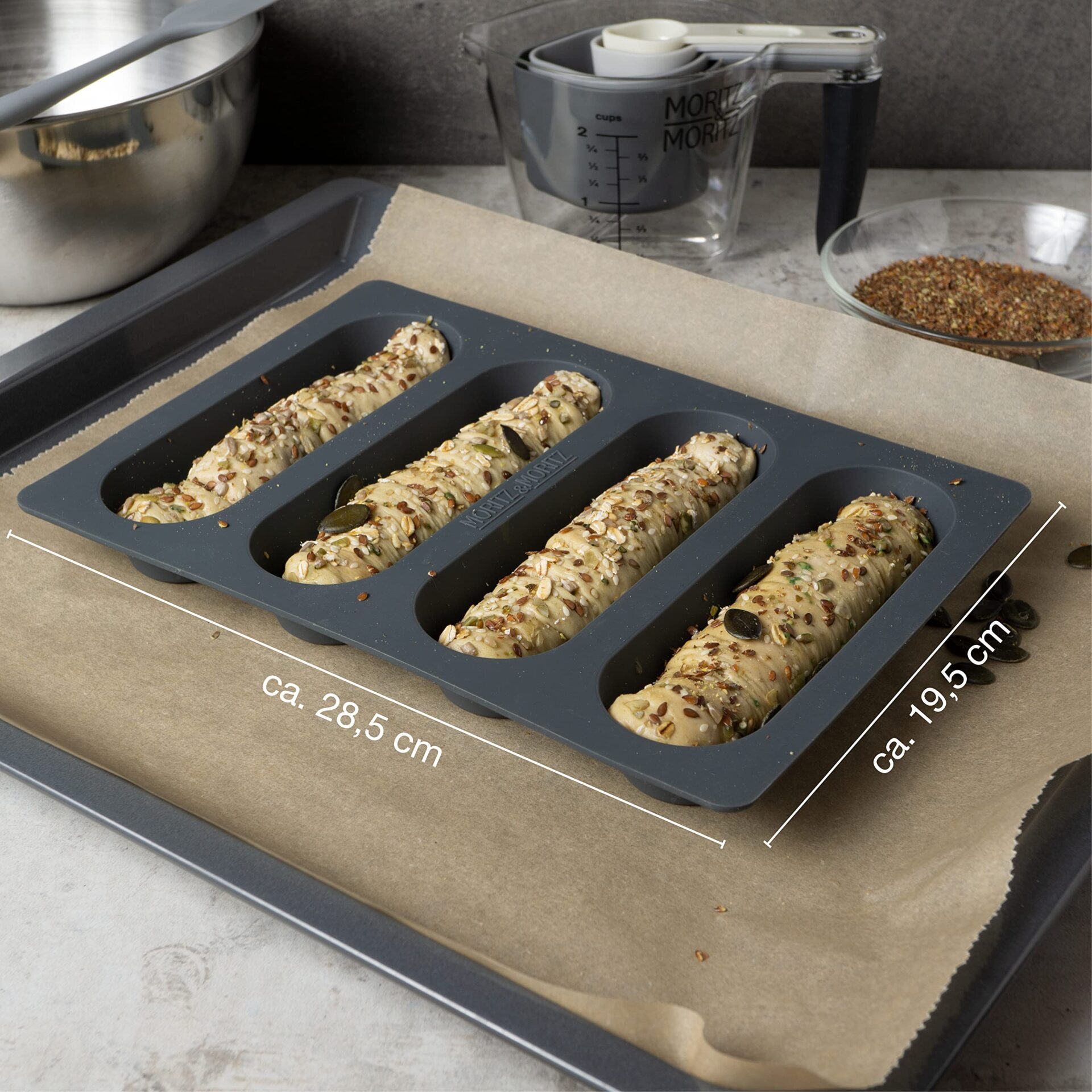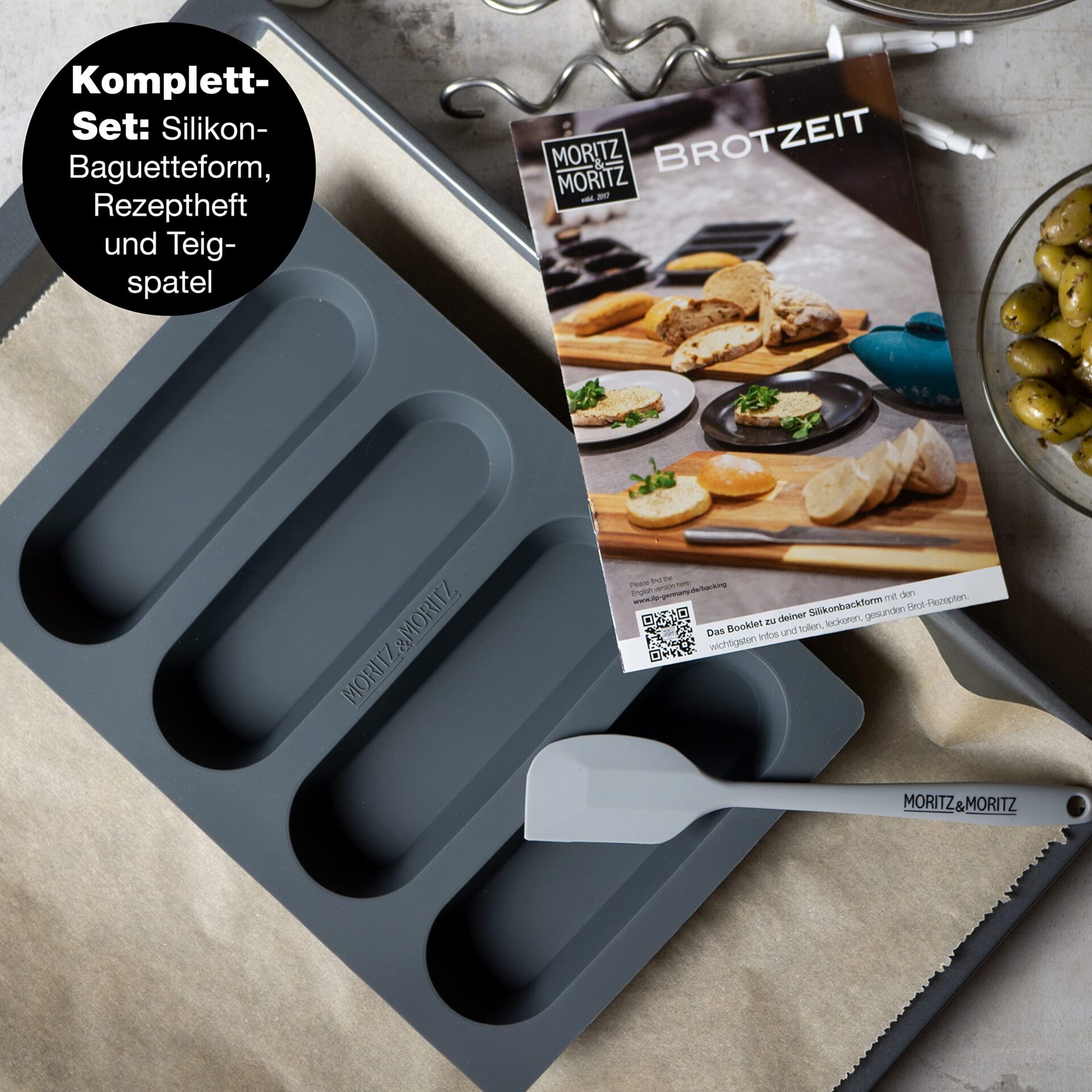 ✅ Kompletny zestaw –: Kompletny zestaw – forma do pieczenia bułek Moritz & Moritz z silikonu na 4 burgery, wymiary: 26,5 x 26,5 cm, wymiary bułek: Ø 12 cm, w zestawie skrobak do ciasta