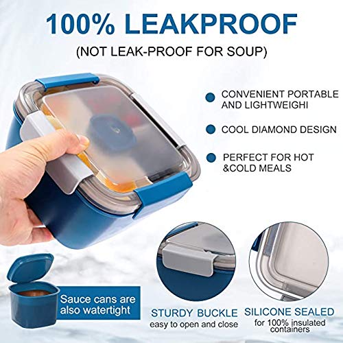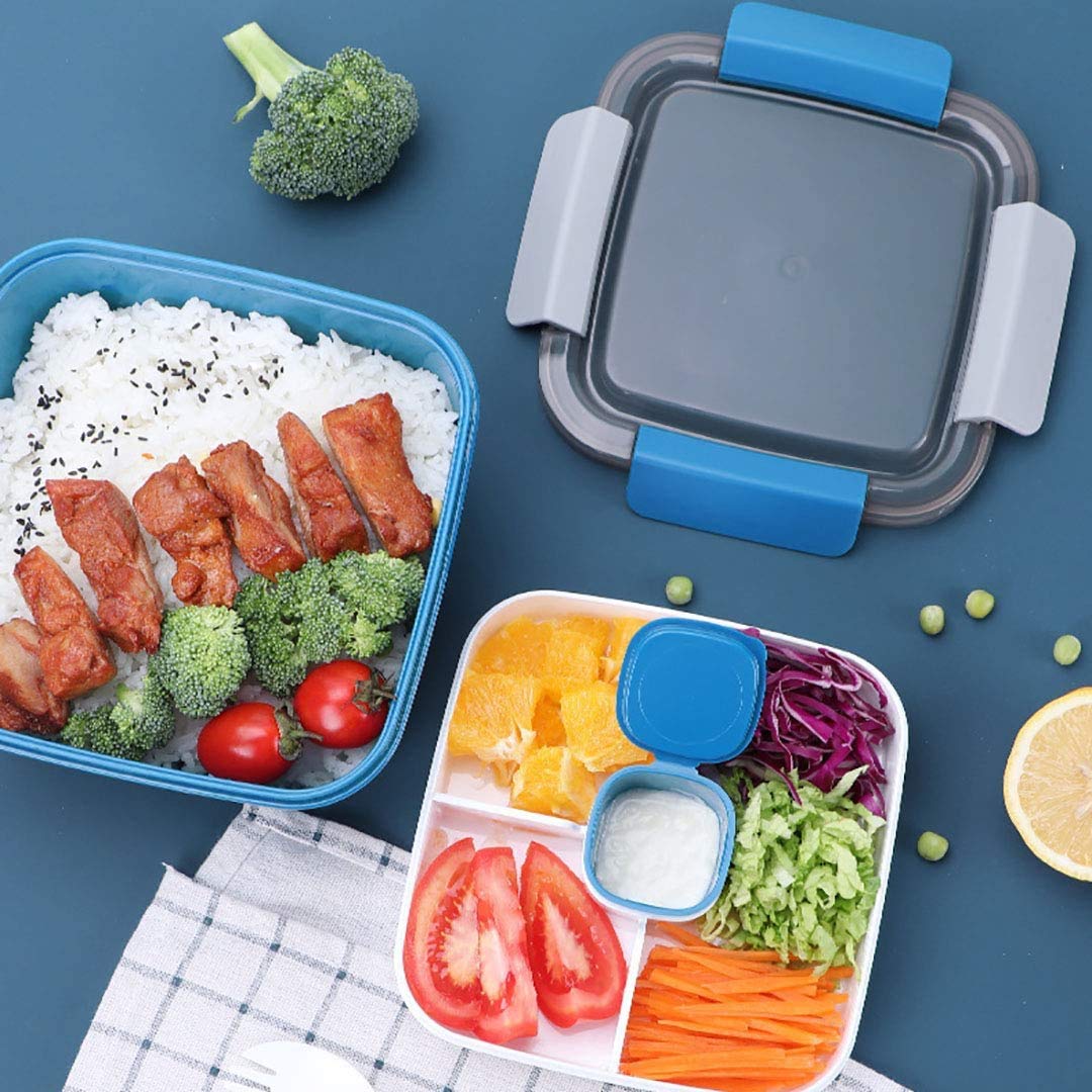 MUJUZE Lunch Box,Pudełko na lunch z dzielonymi przegródkami, Bento Boxh dla dorosłych/dzieci, Bez BPA i nadaje się do mycia w zmywarce, pudełko na sałatki, pudełko Bento do szkoły, pracy (Blue)