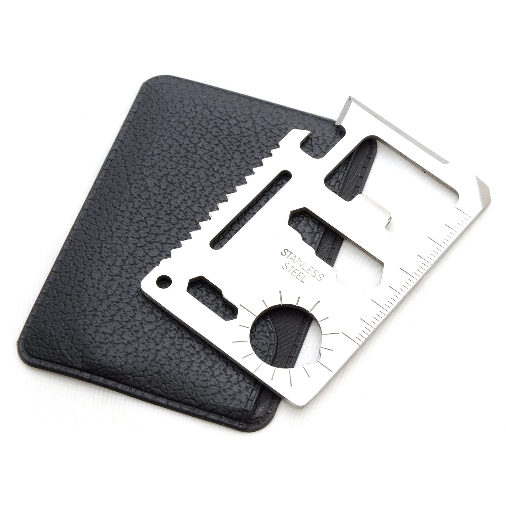 Ganzoo Narzędzie wielofunkcyjne w formacie karty kredytowej ze stali nierdzewnej, 12 funkcji w zestawie etui, narzędzie outdoorowe z nożem, piłą, otwieraczem do butelek, linijką, śrubokrętem, 29 g